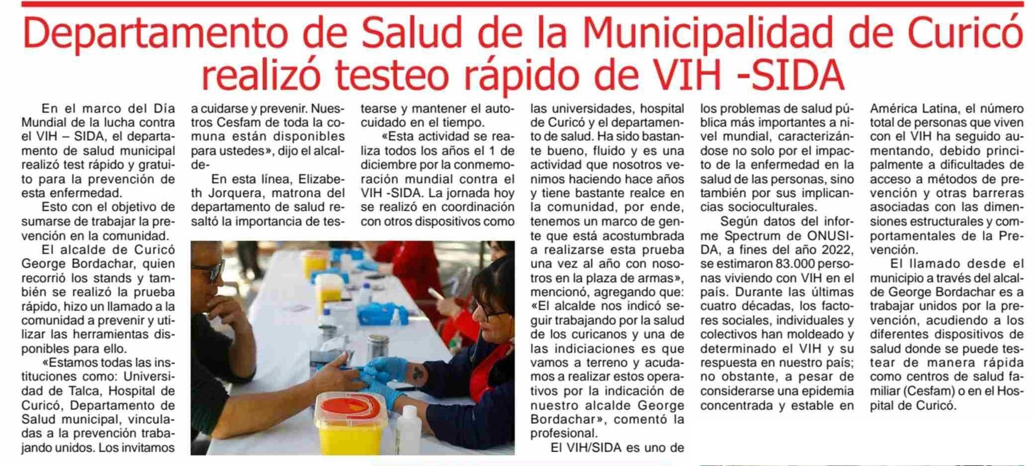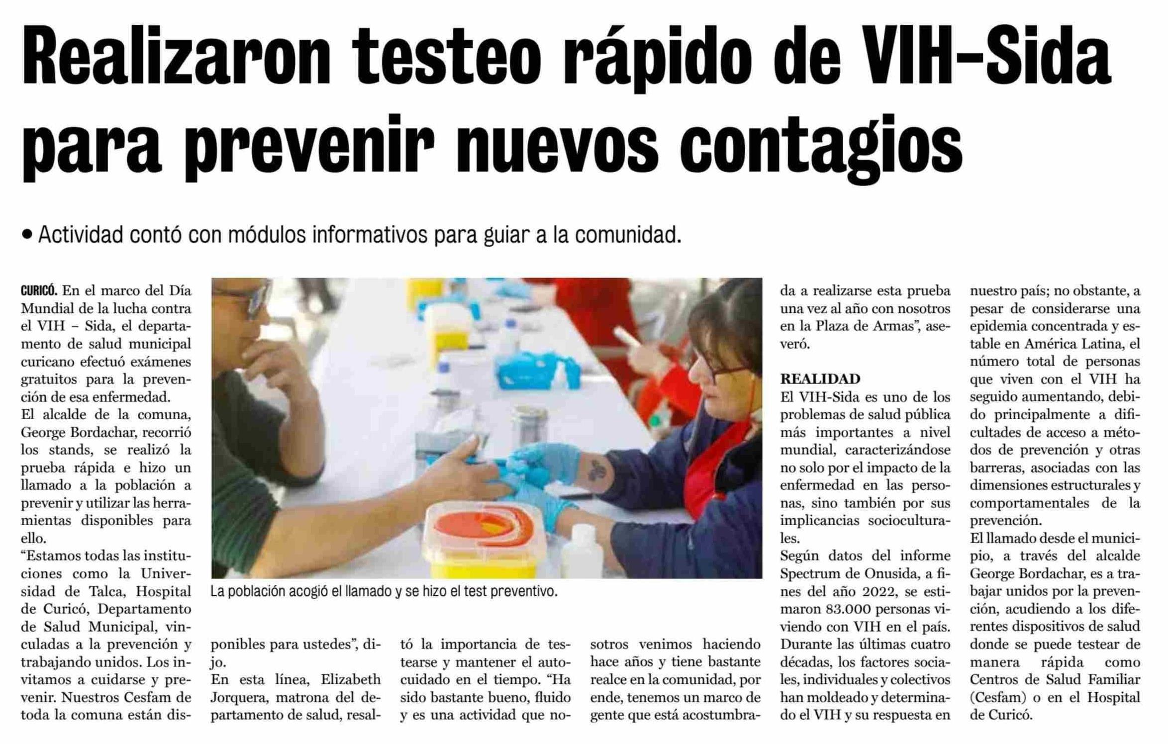 Realizaron testeo rápido de VIH-Sida para prevenir nuevos contagios. Se menciona la Universidad de Talca.
