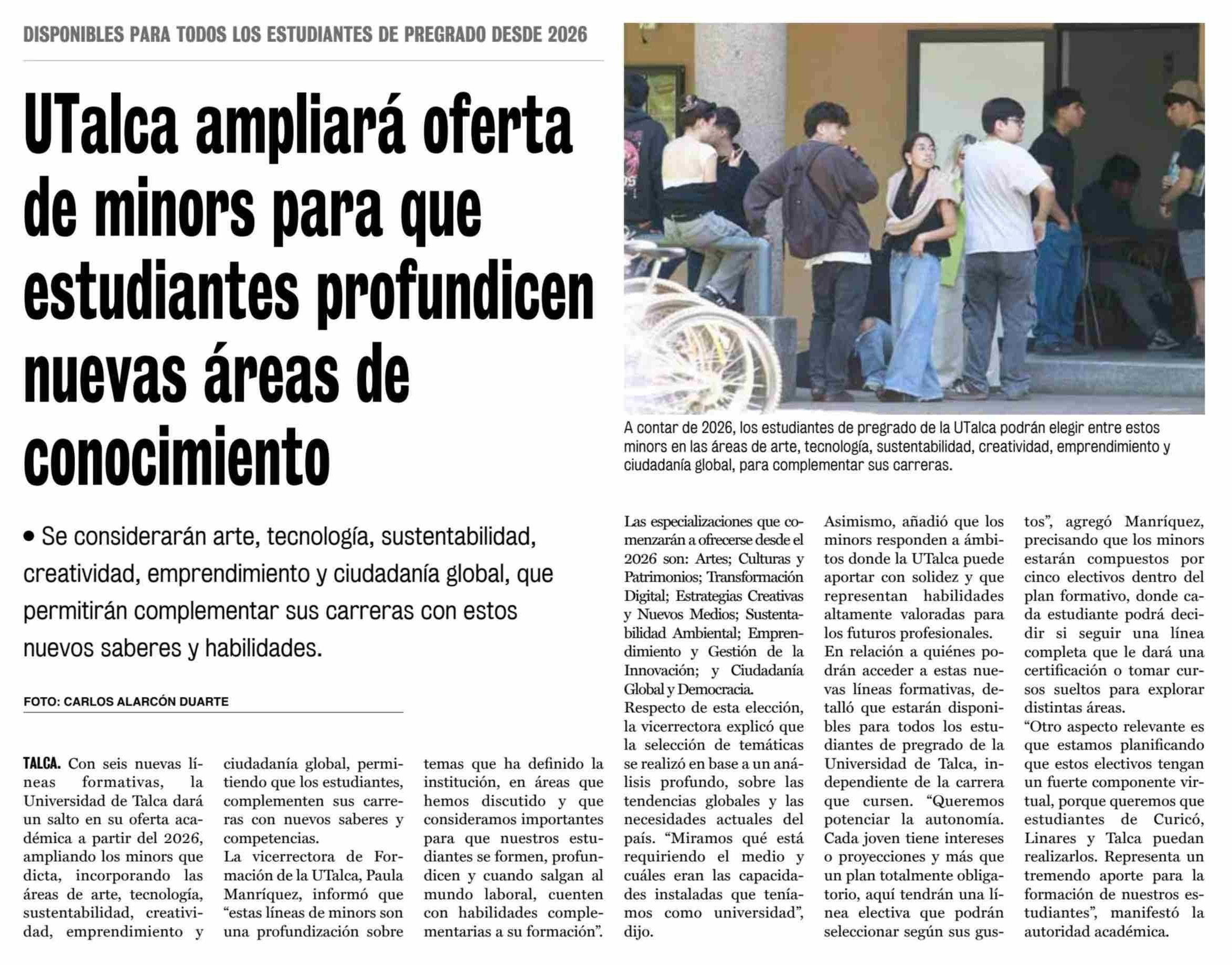 UTalca ampliará oferta de minors para que estudiantes profundicen nuevas áreas de conocimiento. Se refiere Paula Manríquez Novoa, vicerrectora de Formación.