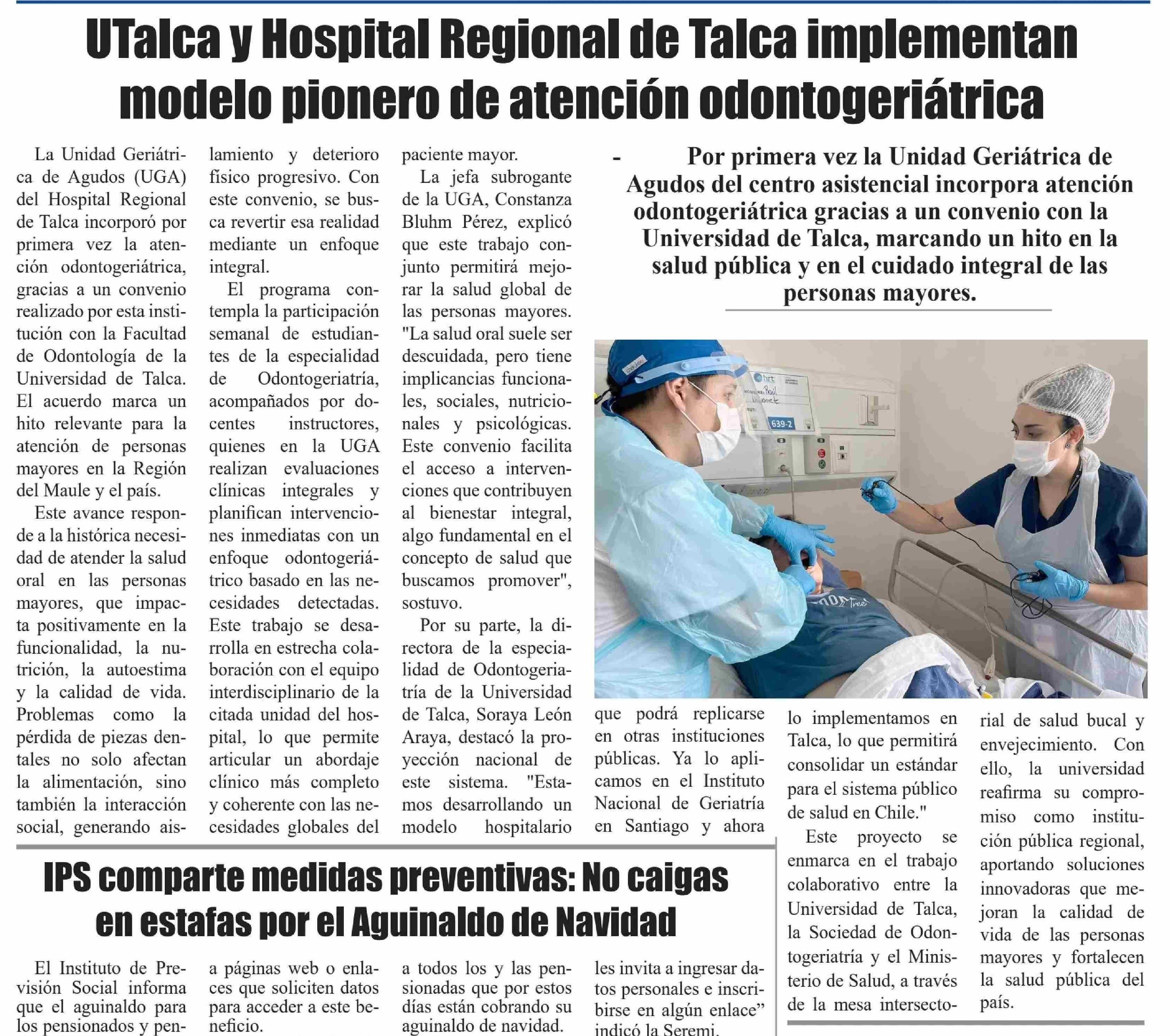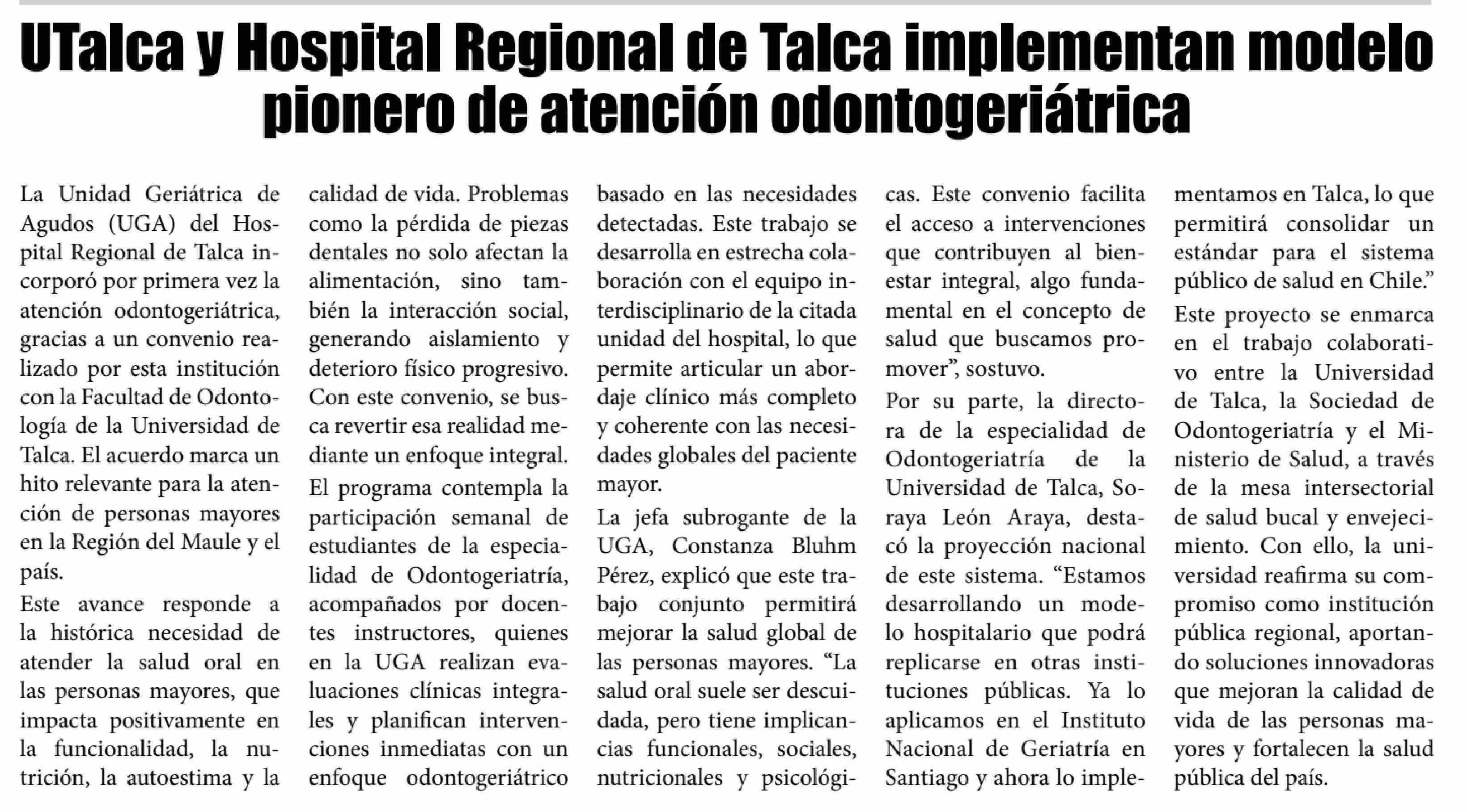 UTalca y Hospital Regional de Talca implementan modelo pionero de atención odontogeriátrica. Se refiere Soraya León Araya, directora de la Especialidad en Odontogeriatría.