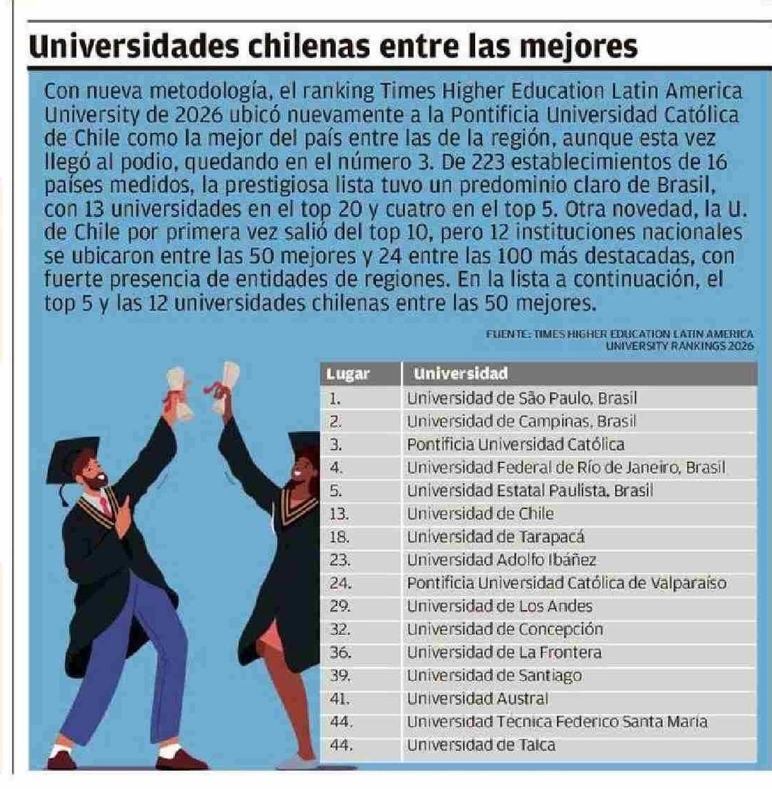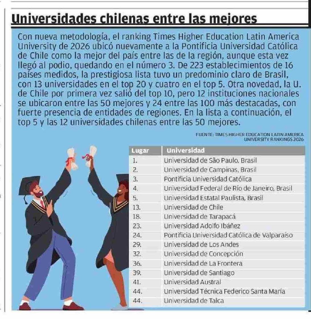 Universidades chilenas entre las mejores. Se menciona la Universidad de Talca