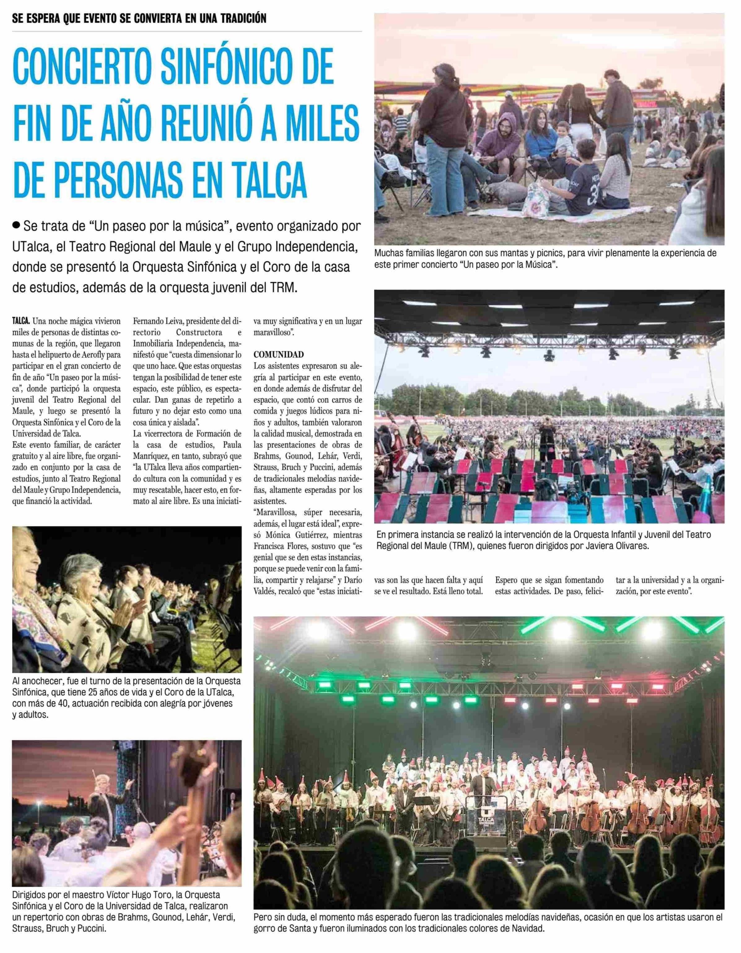 Concierto sinfónico de fin de año reunió a miles de personas en Talca. Se refiere Paula Manríquez, vicerrectora de Formación.