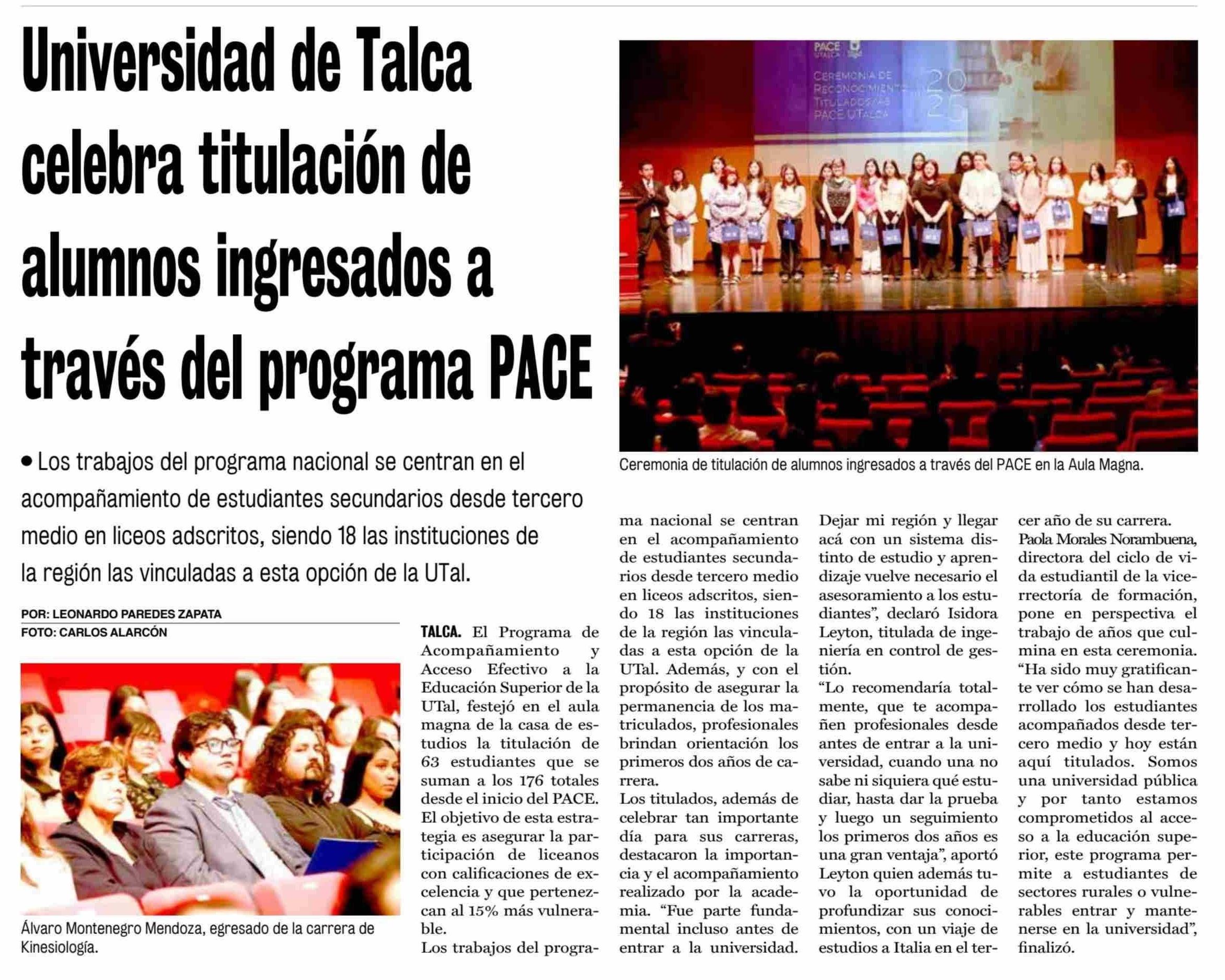 Universidad de Talca celebra titulación de alumnos ingresados a través del programa PACE. Se refiere Paola Morales Norambuena, directora del Ciclo de Vida Estudiantil.