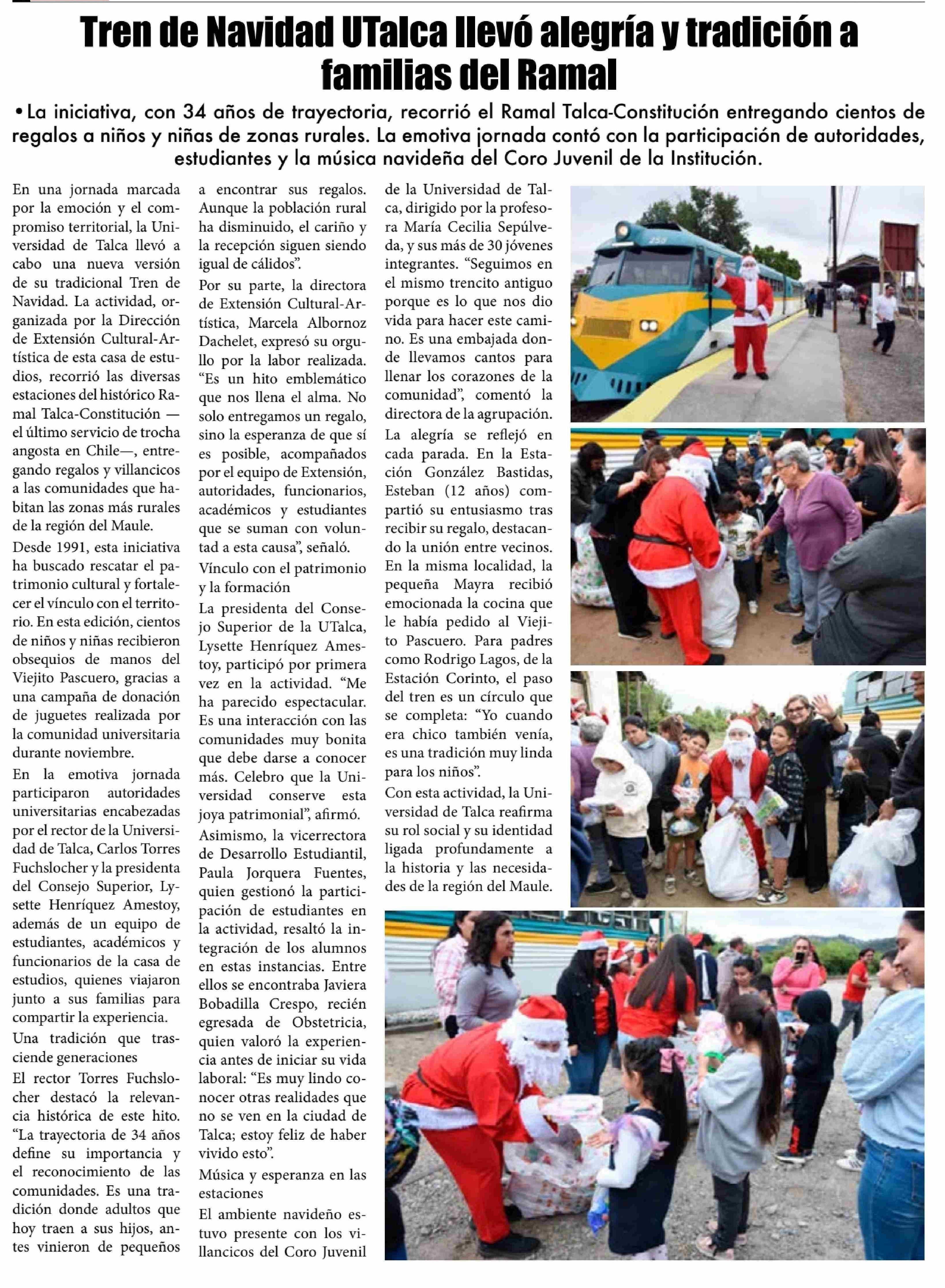 Tren de Navidad UTalca llevó alegría y tradición a familias del Ramal. Se refiere Carlos Torres Fuchslocher , rector.