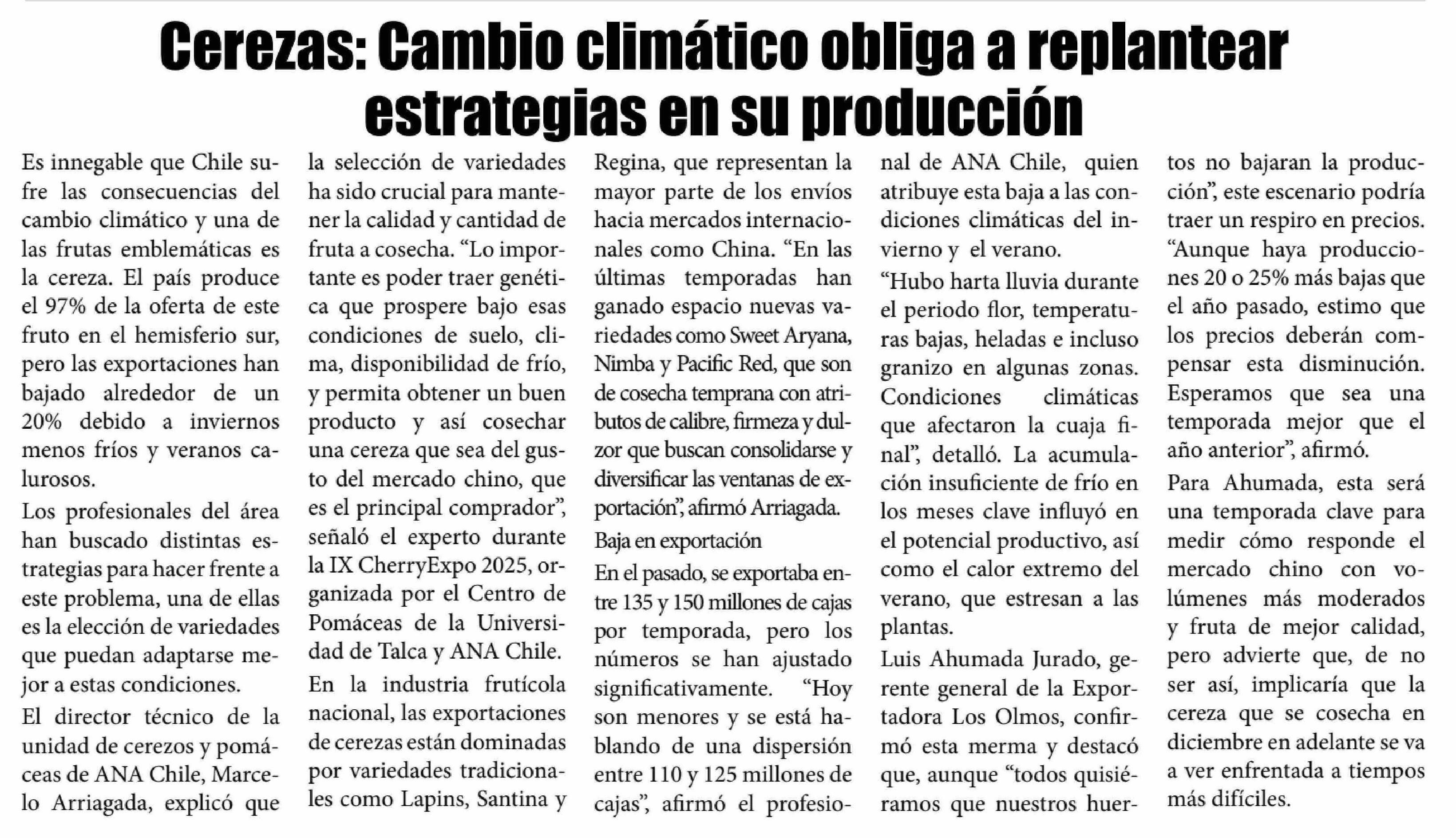 Cambio climático obliga a replantear estrategias para la producción de cerezas. Se refiere Álvaro Sepúlveda León, investigador del Centro de Pomáceas.