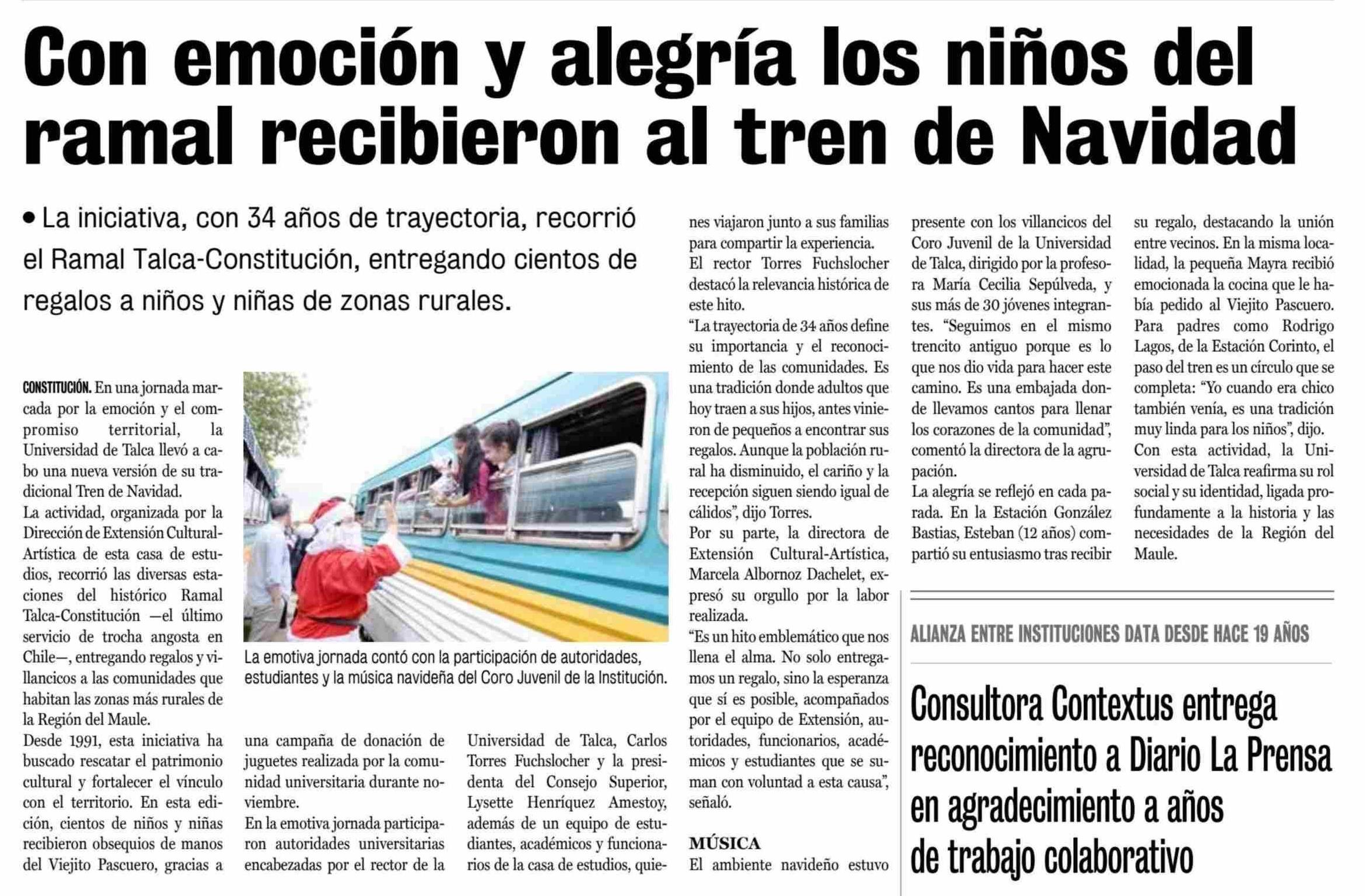Cisnes celebra Veladas Navideñas con un Brillante Concierto Coral. Se menciona la Universidad de Talca.