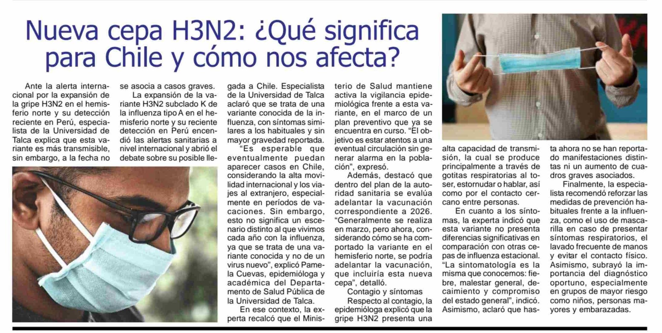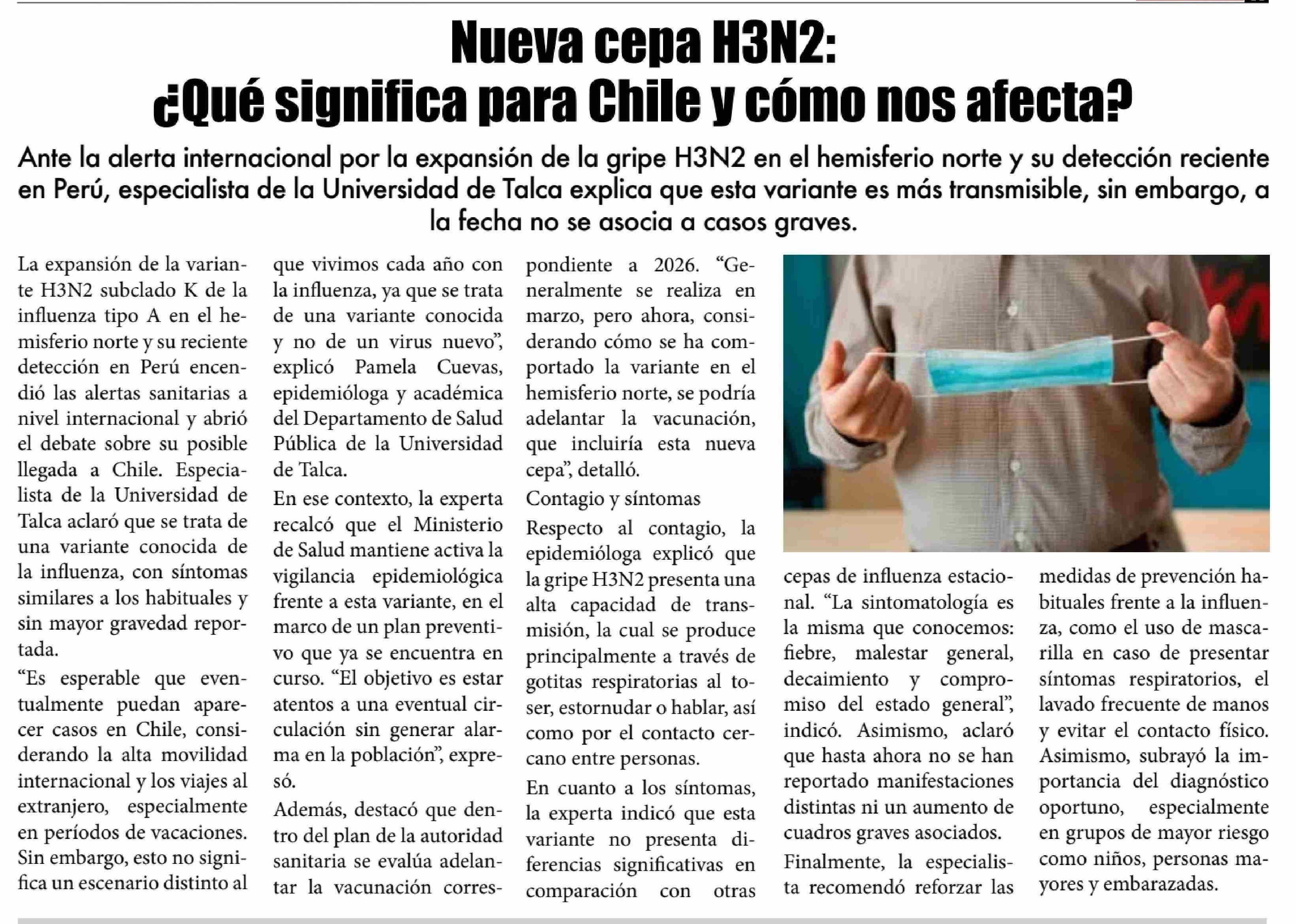 Nueva cepa H3N2: ¿Qué significa para Chile y cómo nos afecta? Pamela Cuevas, académica del Departamento de Salud Pública.