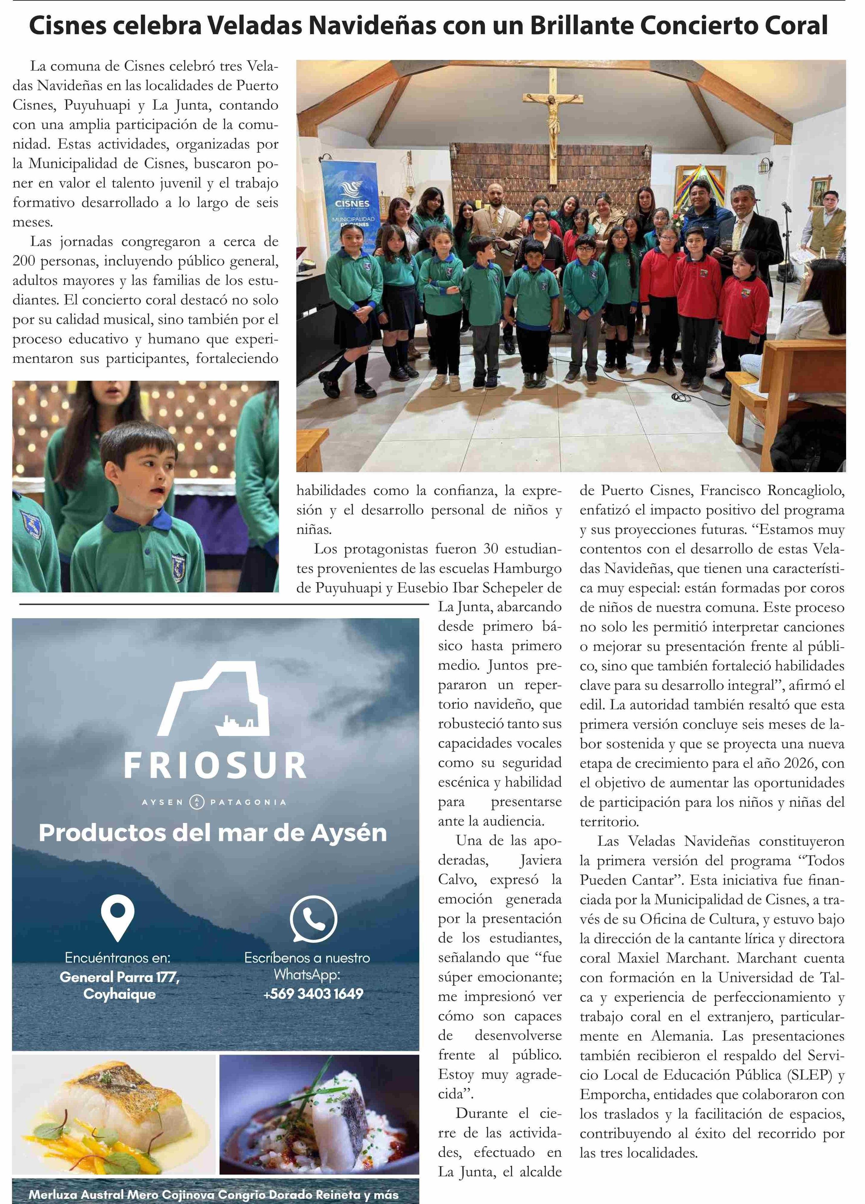 Cisnes celebra Veladas Navideñas con un Brillante Concierto Coral. Se menciona la Universidad de Talca