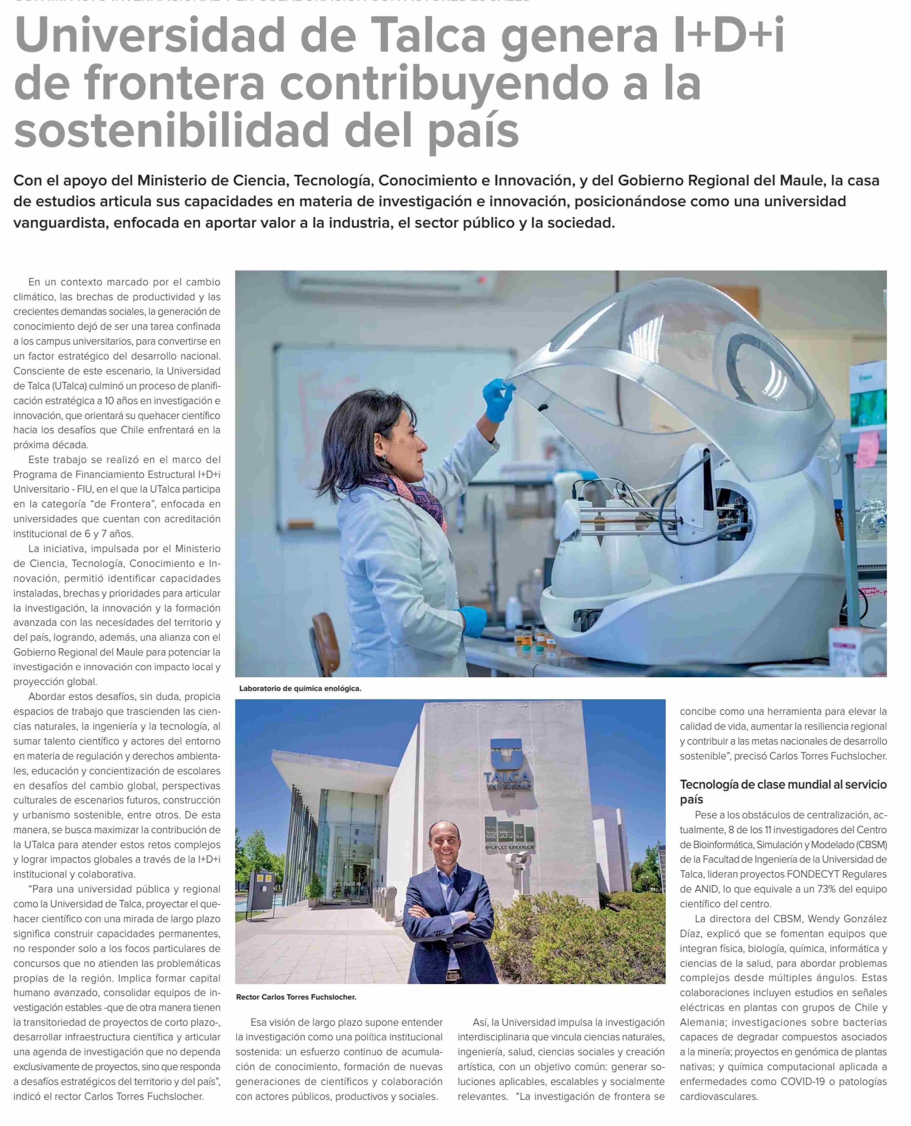Universidad de Talca genera I+D+i de frontera contribuyendo a la sostenibilidad del país. Se refiere Carlos Torres Fuchslocher, rector.