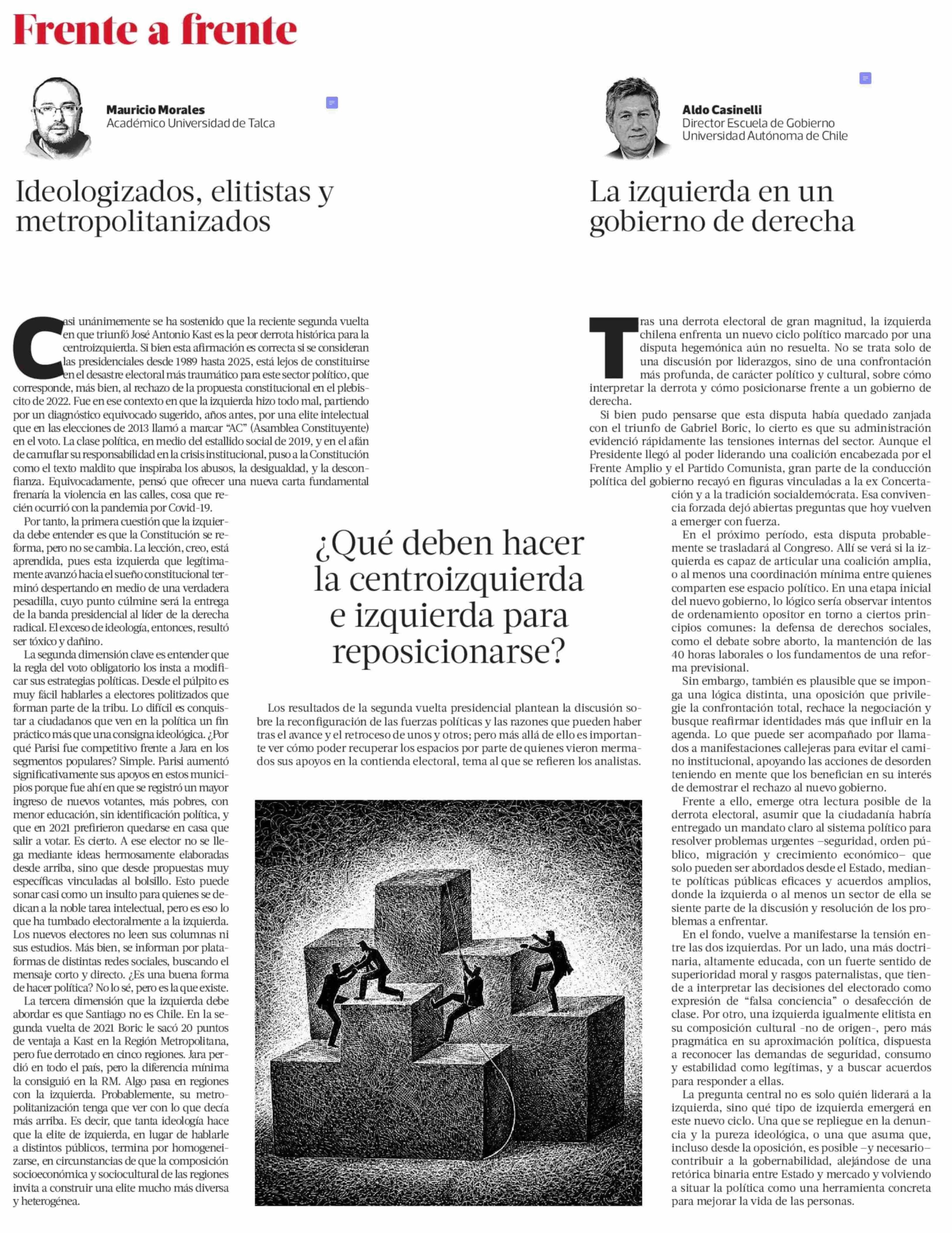 Ideologizados, elitistas y metropolitanizados. Se refiere Mauricio Morales Quiroga, director del Centro de Análsisis Político (CAP-UTalca).