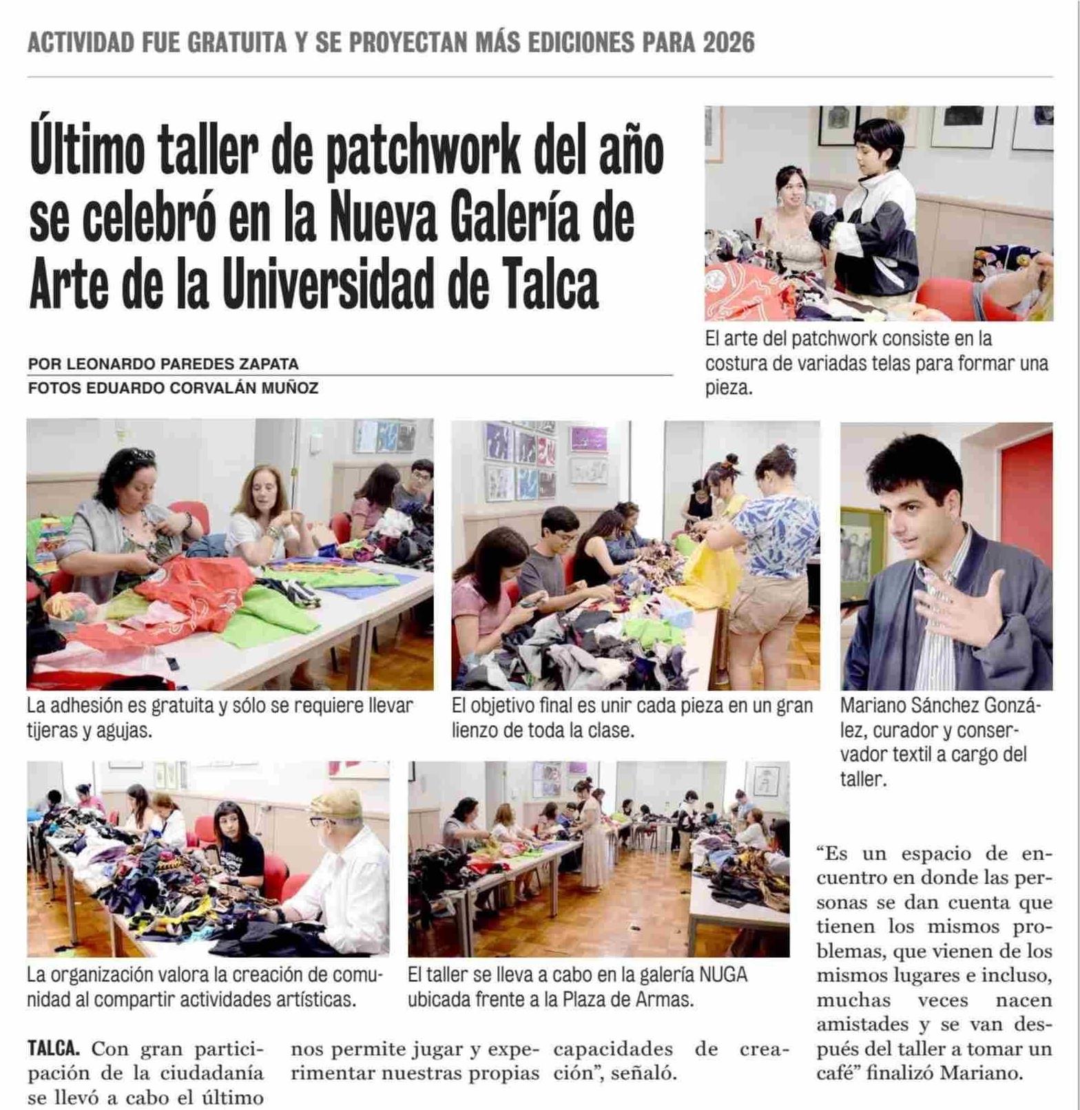 Último taller de patchwork del año se celebró en la Nueva Galería de Arte de la Universidad de Talca. Se menciona la Universidad de Talca.