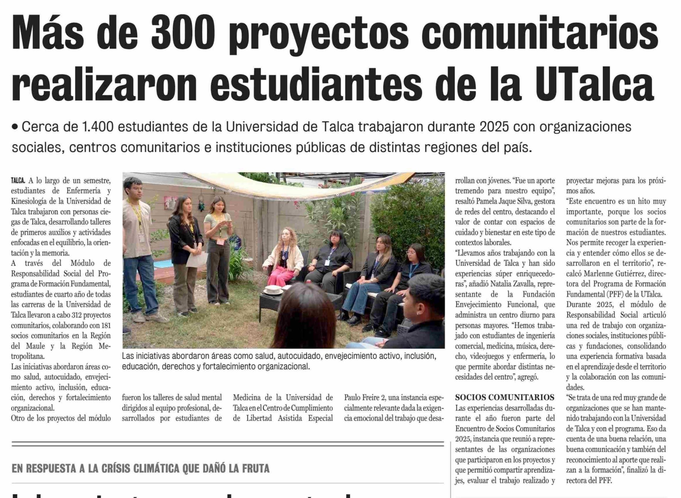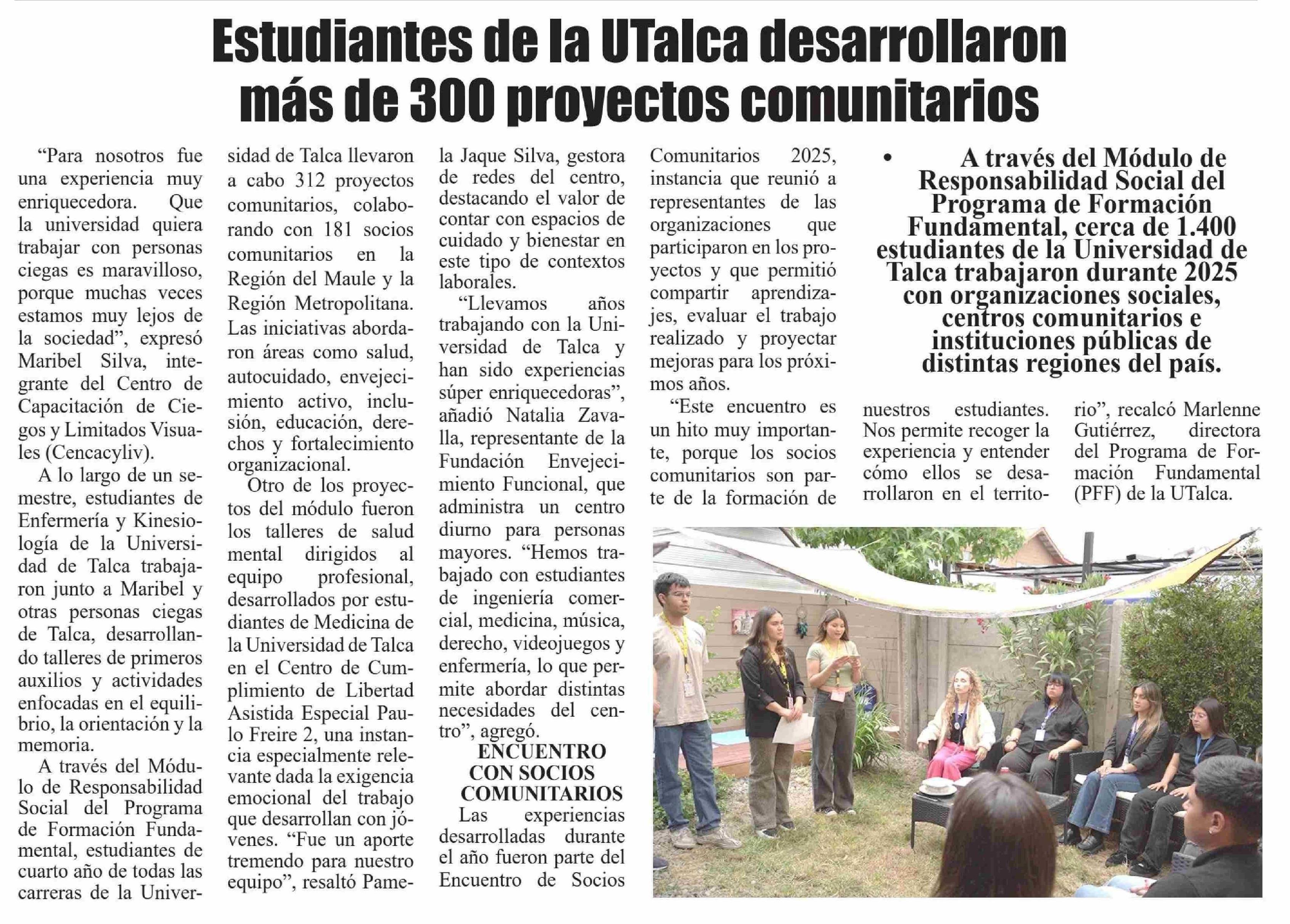 Más de 300 proyectos comunitarios realizaron estudiantes de la UTalca. Se refiere Marlenne Gutiérrez, directora del Programa de Formación Fundamental (PFF).