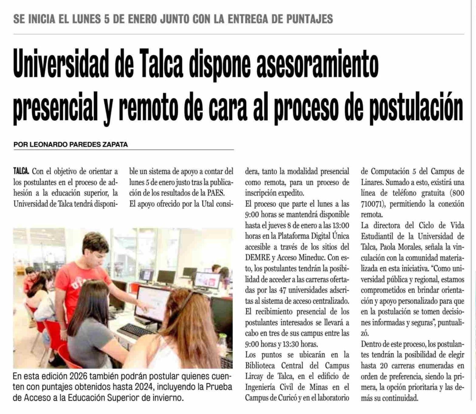 Mes a mes: las 12 noticias que impactaron este 2025 en Talca. Se menciona la Universidad de Talca.