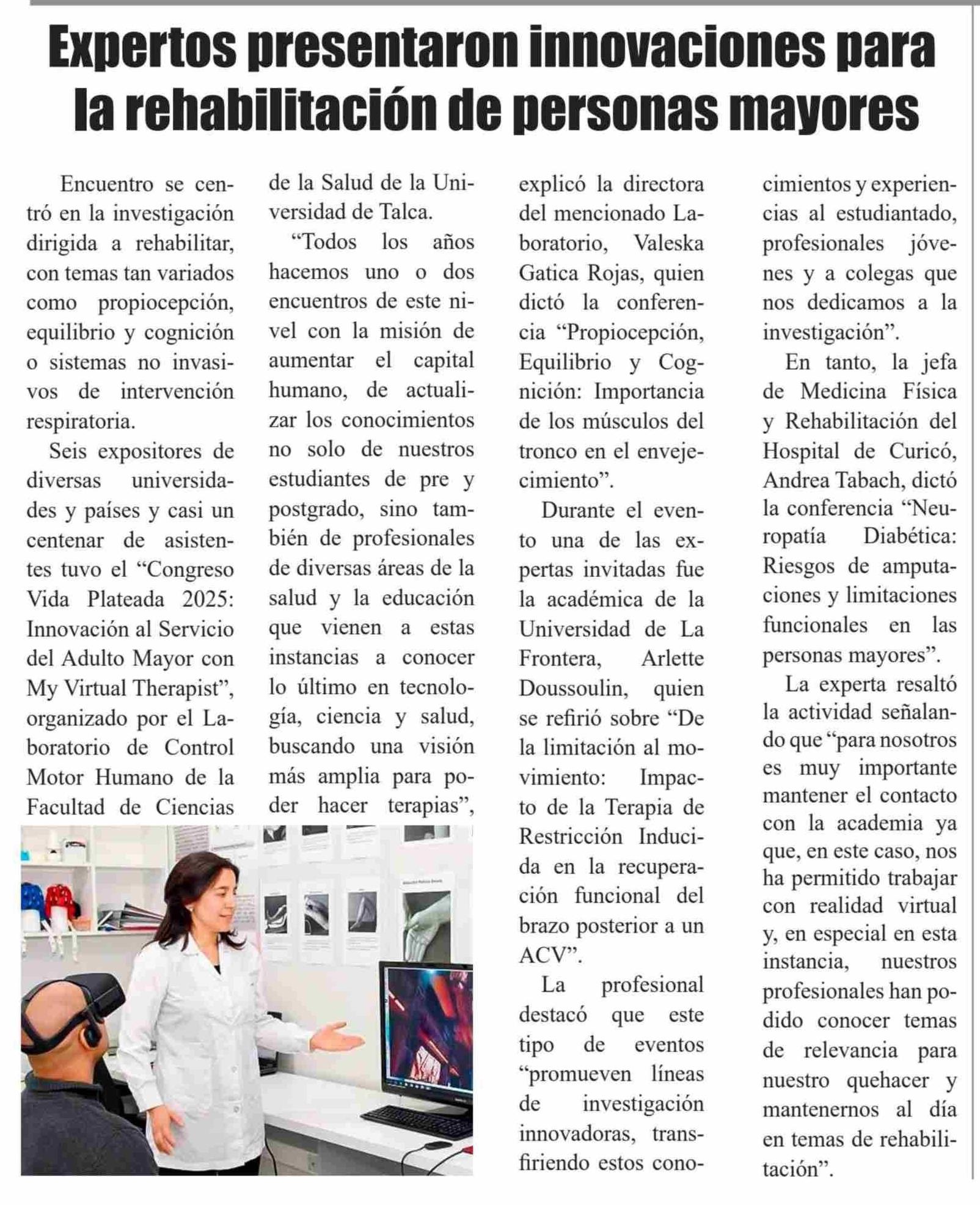 Expertos presentaron innovaciones para la rehabilitación de personas mayores. Se refiere Valeska Gatica Rojas, directora del Laboratorio de Control Humano.