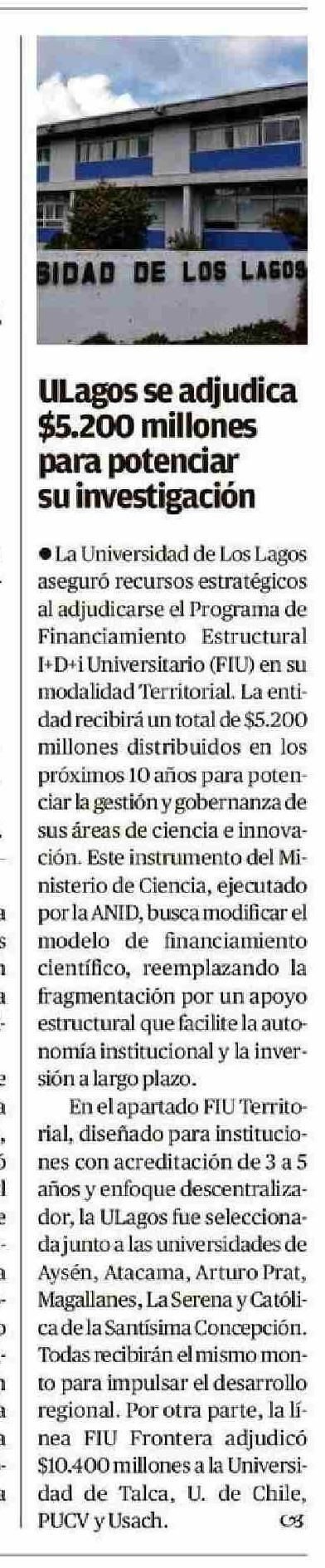 ULagos se adjudica $5.200 millones para potenciar su investigación. Se menciona la Universidad de Talca.