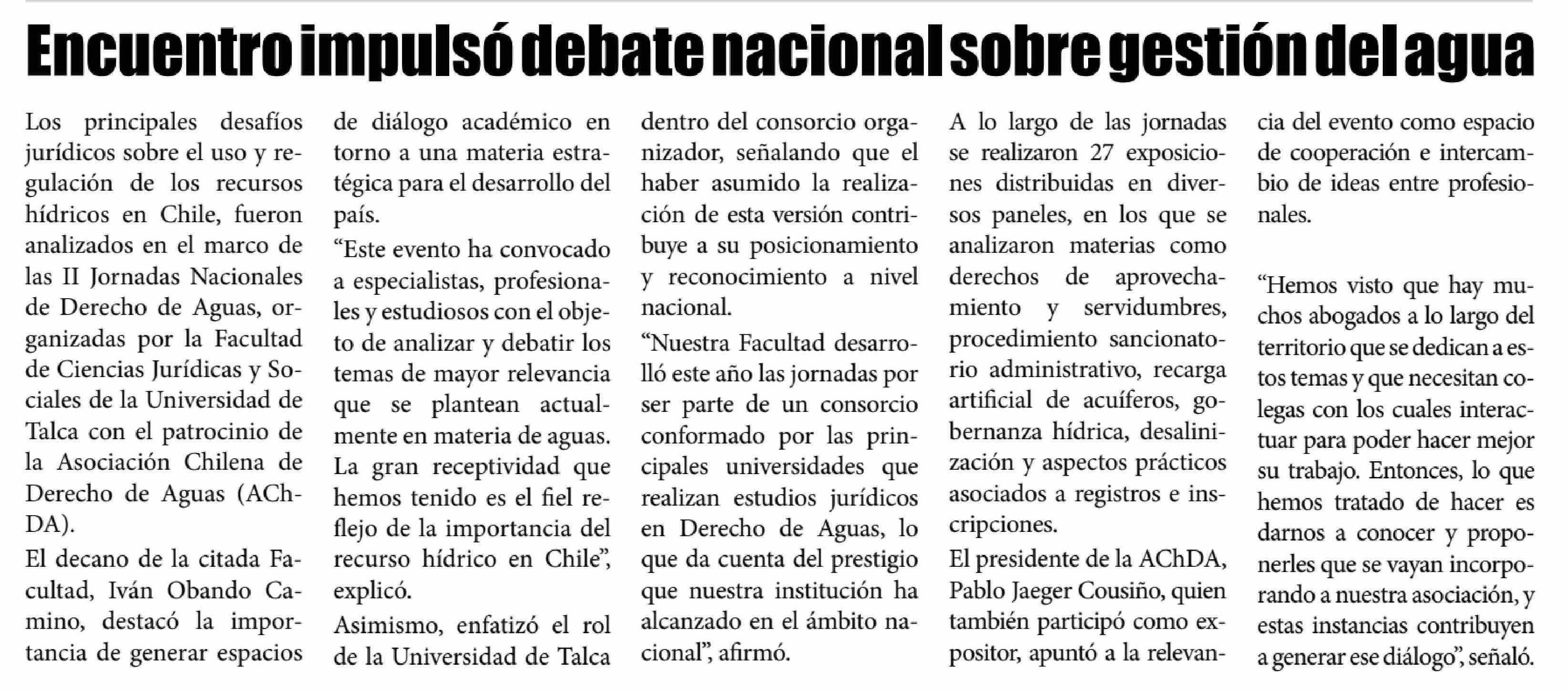 Encuentro impulsó debate nacional sobre gestión del agua. Se refiere Iván Obando Camino, decano de la Facultad de Ciencias Jurídicas y Sociales