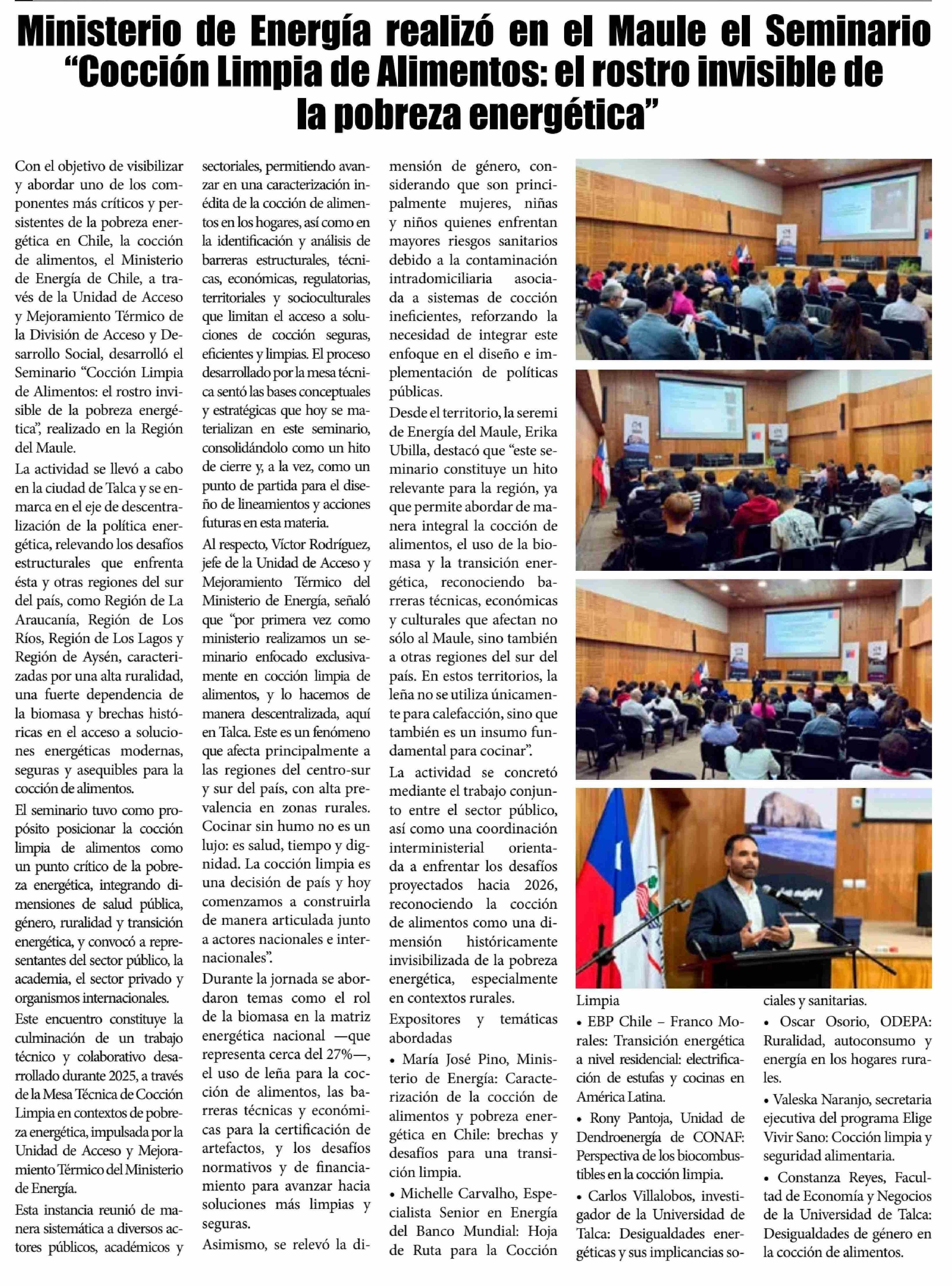 Ministerio de Energía realizó en el Maule el Seminario “Cocción Limpia de Alimentos: el rostro invisible de la pobreza energética”. Se menciona la Universidad de Talca.