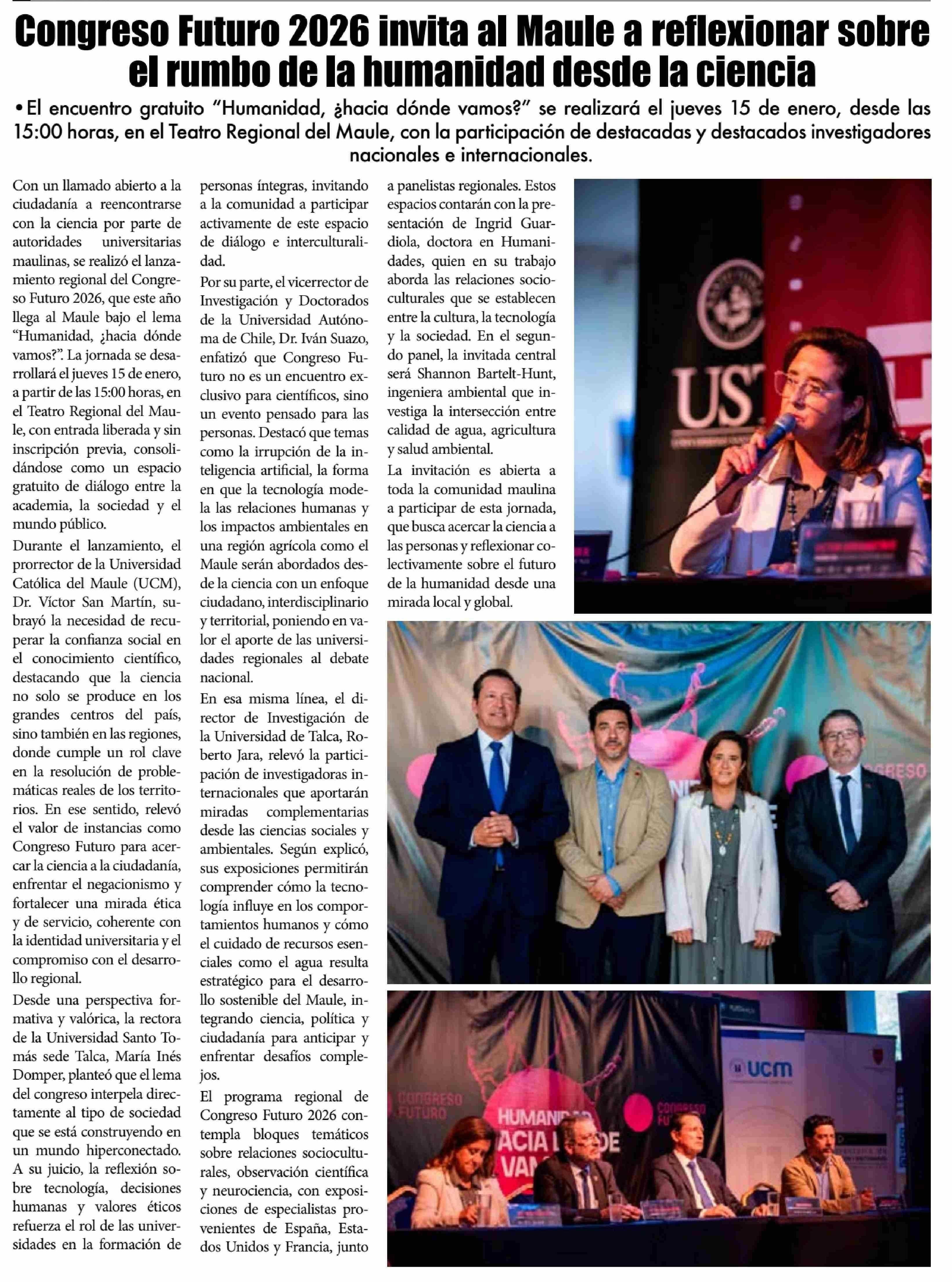 Congreso Futuro 2026 invita al Maule a reflexionar sobre el rumbo de la humanidad desde la ciencia. Se refiere Roberto Jara, director de Investigación.