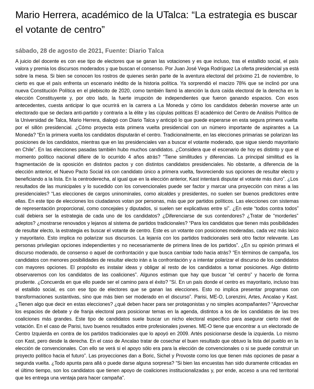 Mario Herrera, académico de la UTalca: “La estrategia es buscar el votante de centro”.