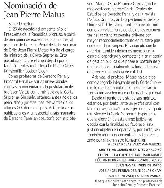 Opinión: Nominación de Jean Pierre Matus. Se menciona a la UTalca.