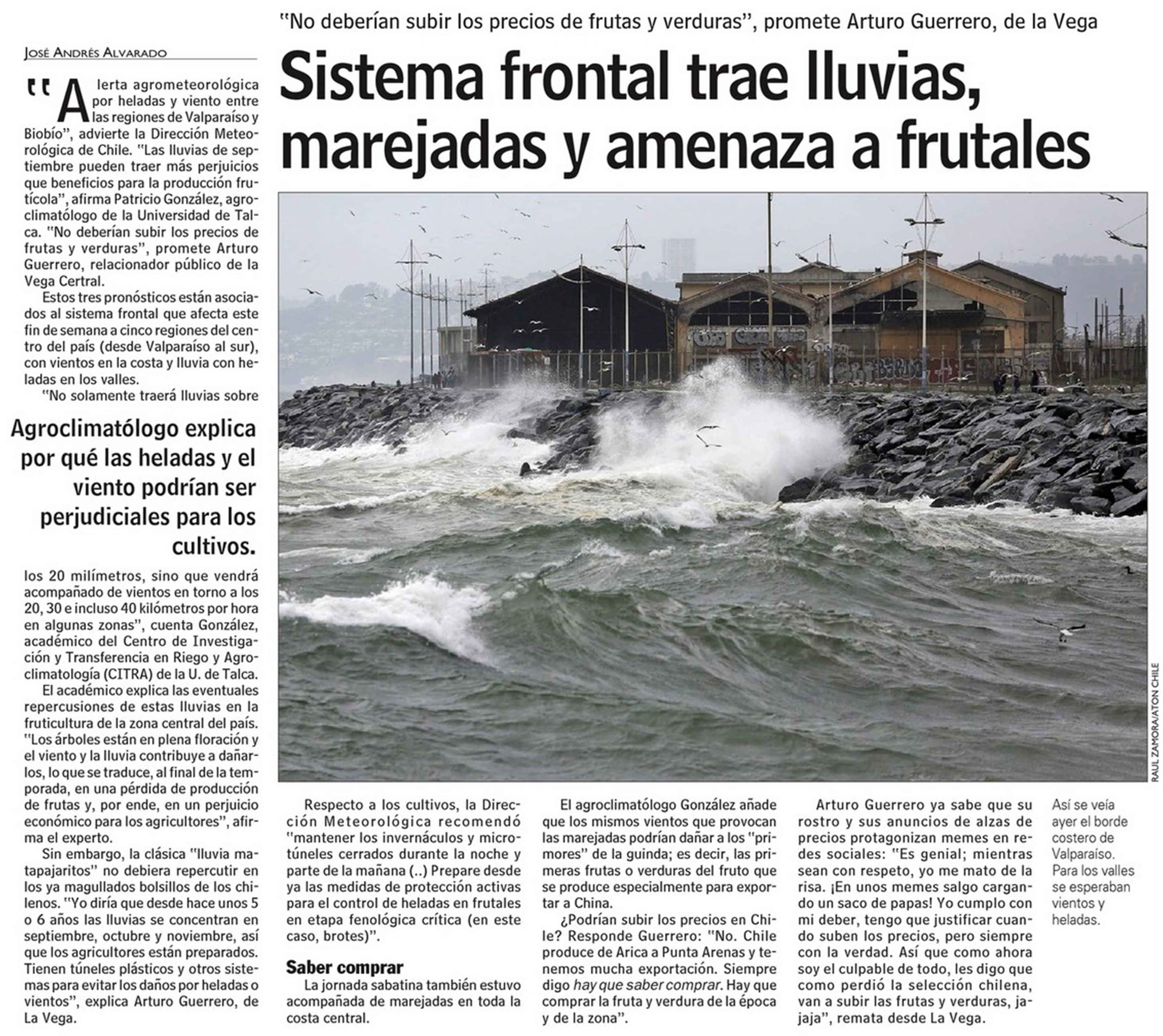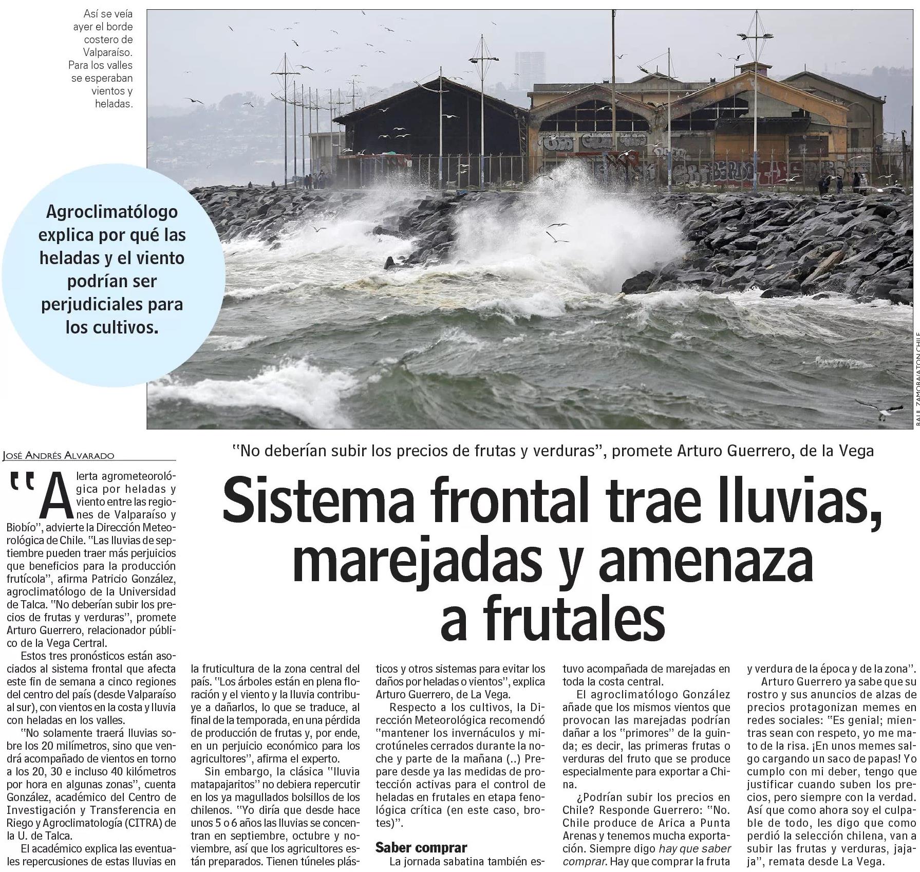 Segunda edición: Sistema frontal trae lluvias, marejadas y amenaza a frutales. Se refiere Patricio González, agroclimatólogo de la UTalca.