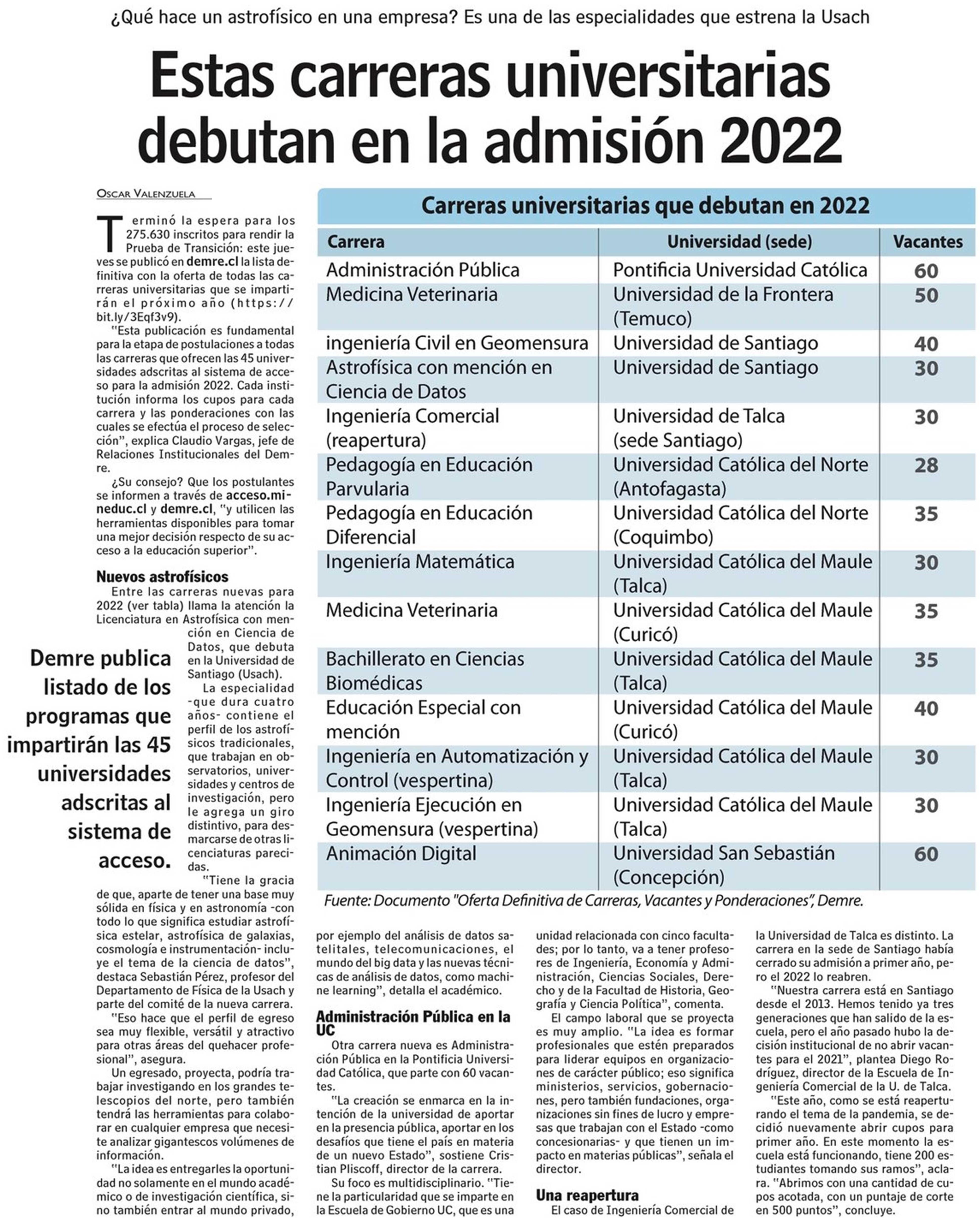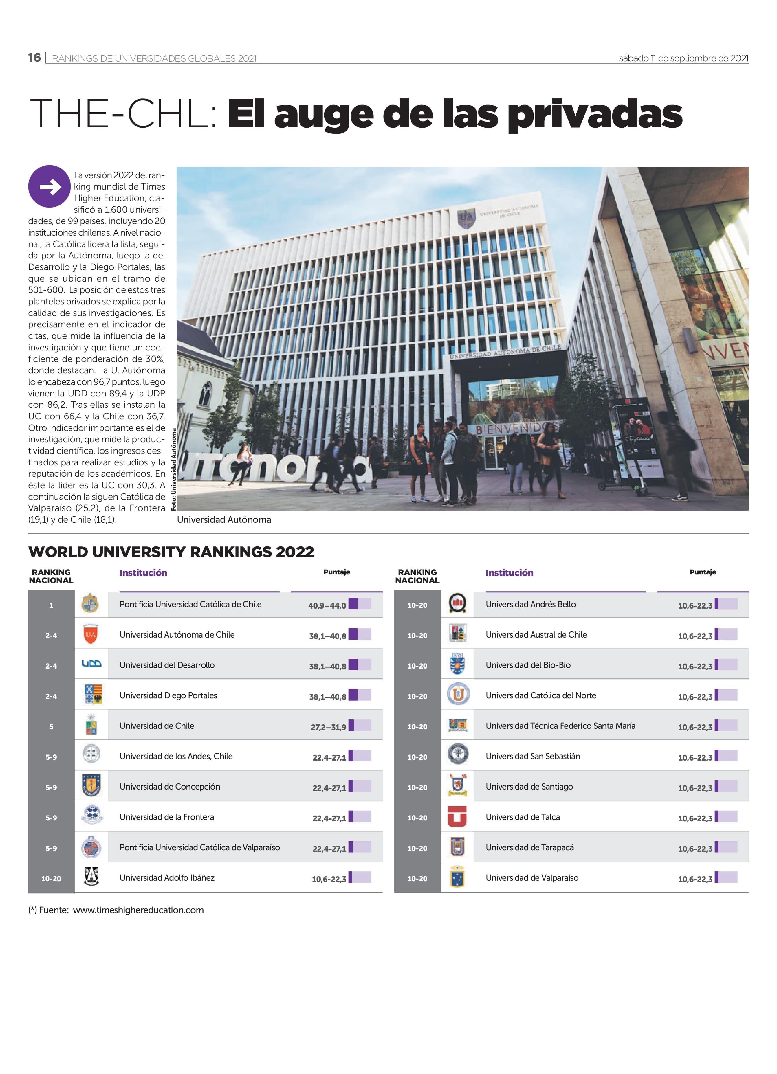 THE-CHL: El auge de las privadas. Se menciona a la UTalca.