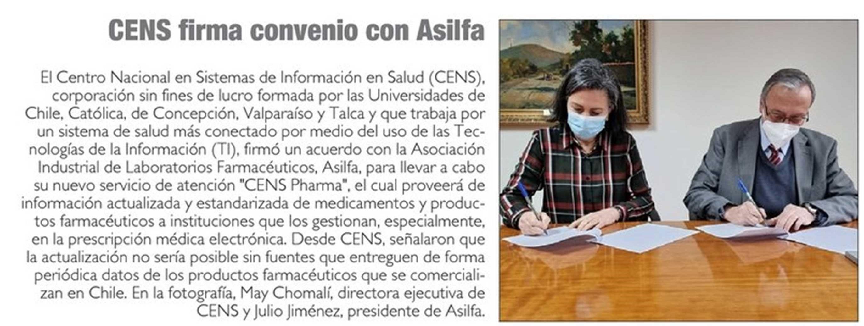 CENS firma convenio con Asilfa. Se menciona a la UTalca.