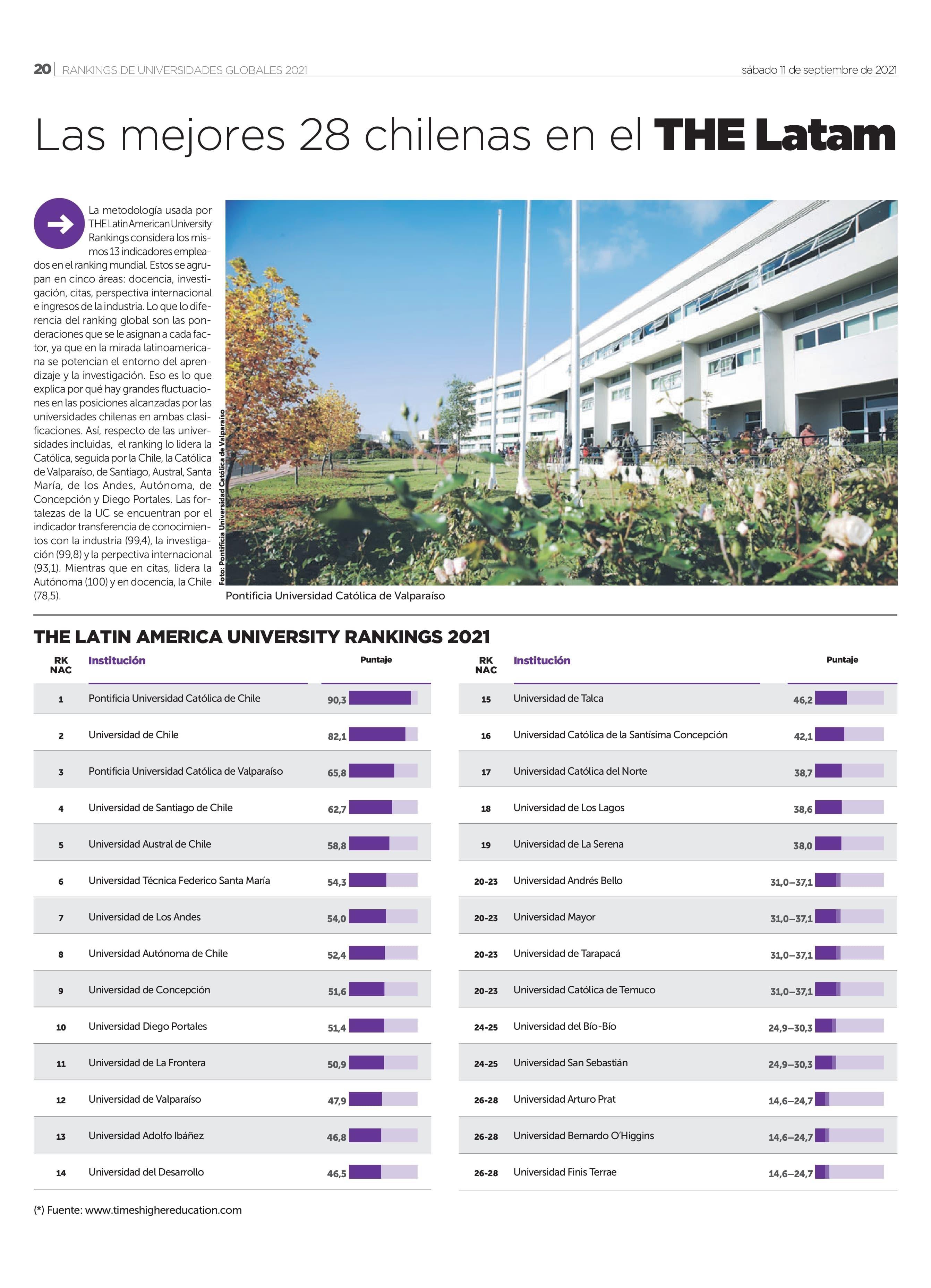 Las mejores 28 chilenas en el THE Latam. Se menciona a la UTalca.