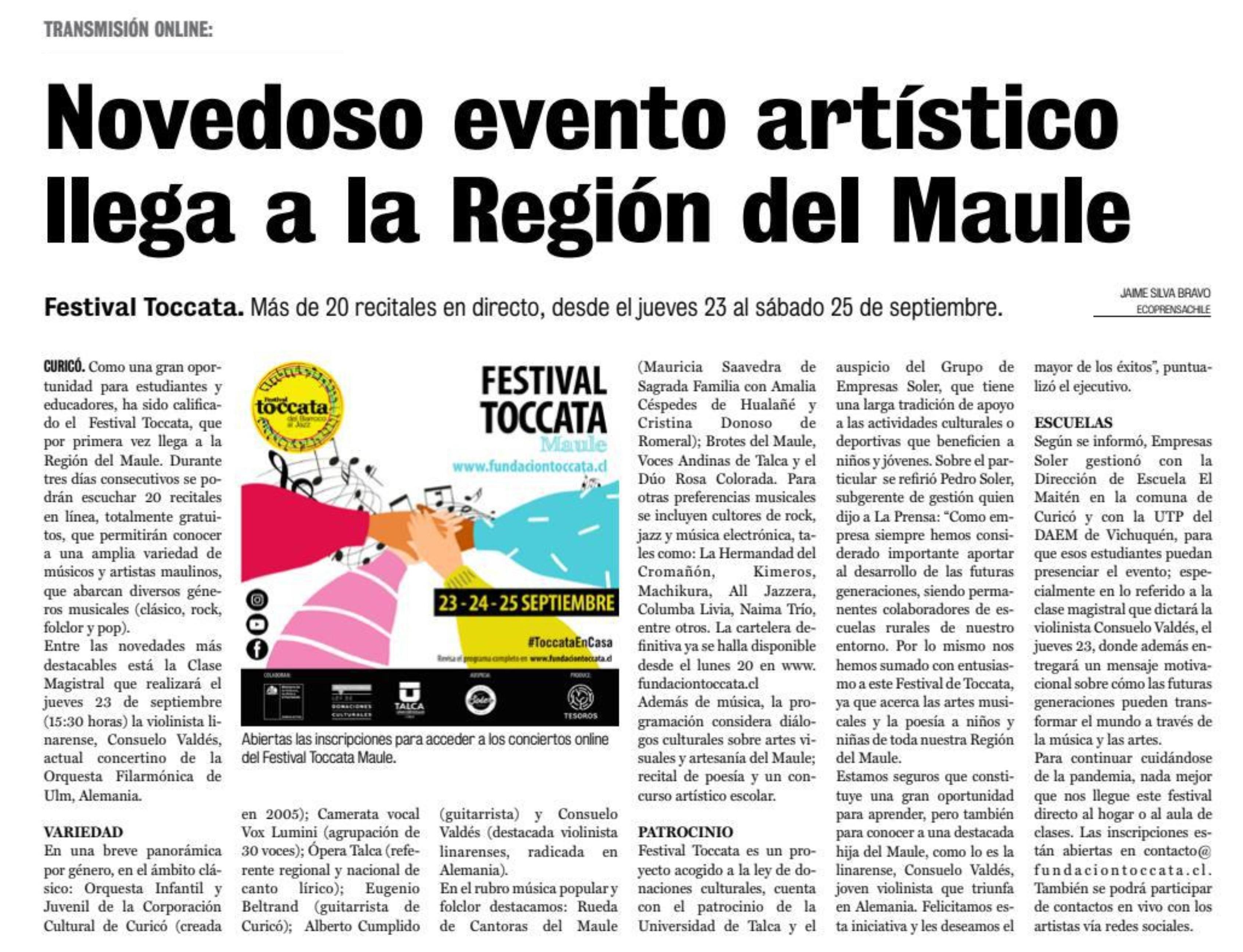 Novedoso evento artístico llega a la Región del Maule. Se menciona a la UTalca.