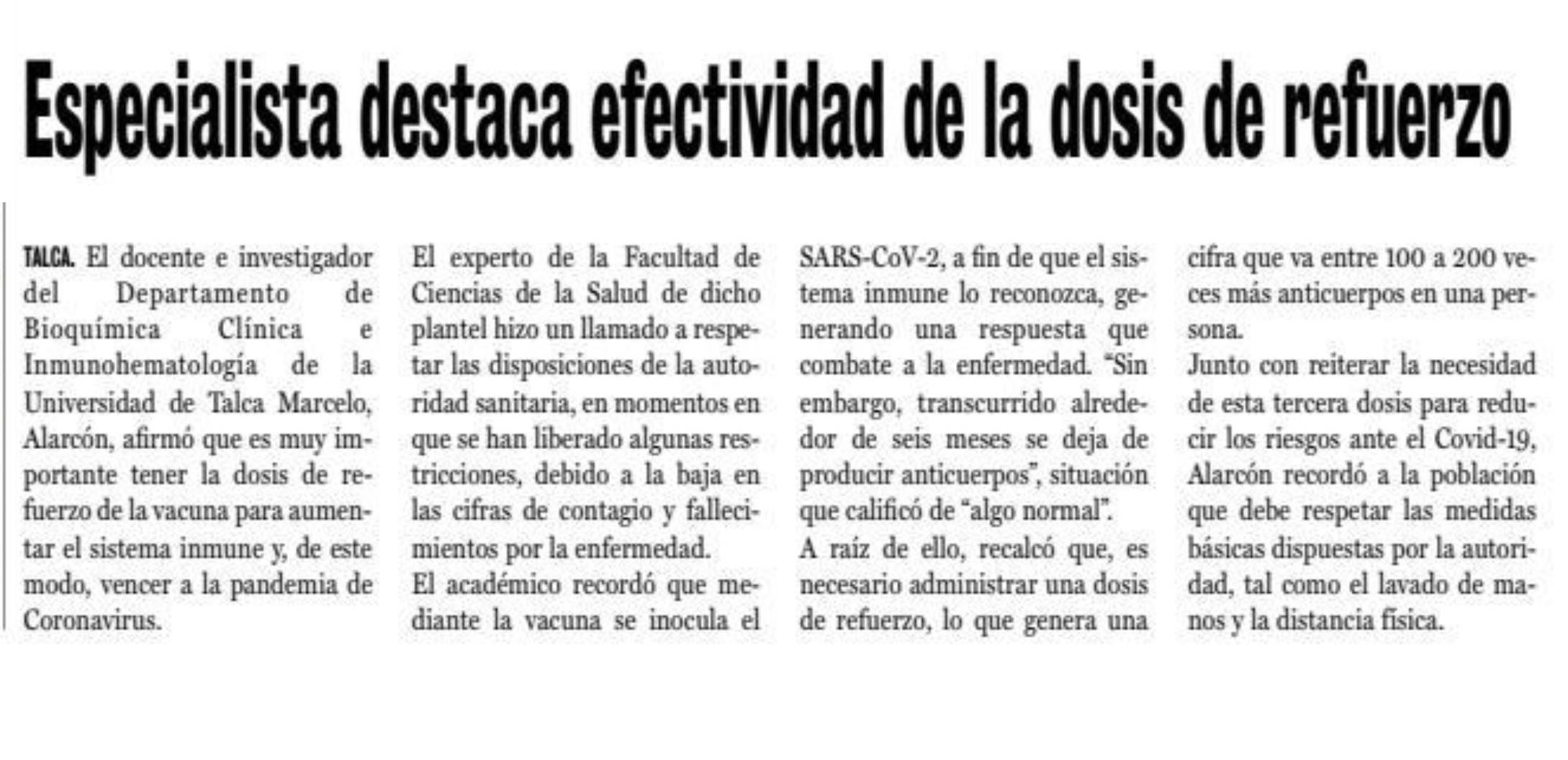 Especialista UTalca destaca efectividad de la dosis de refuerzo.