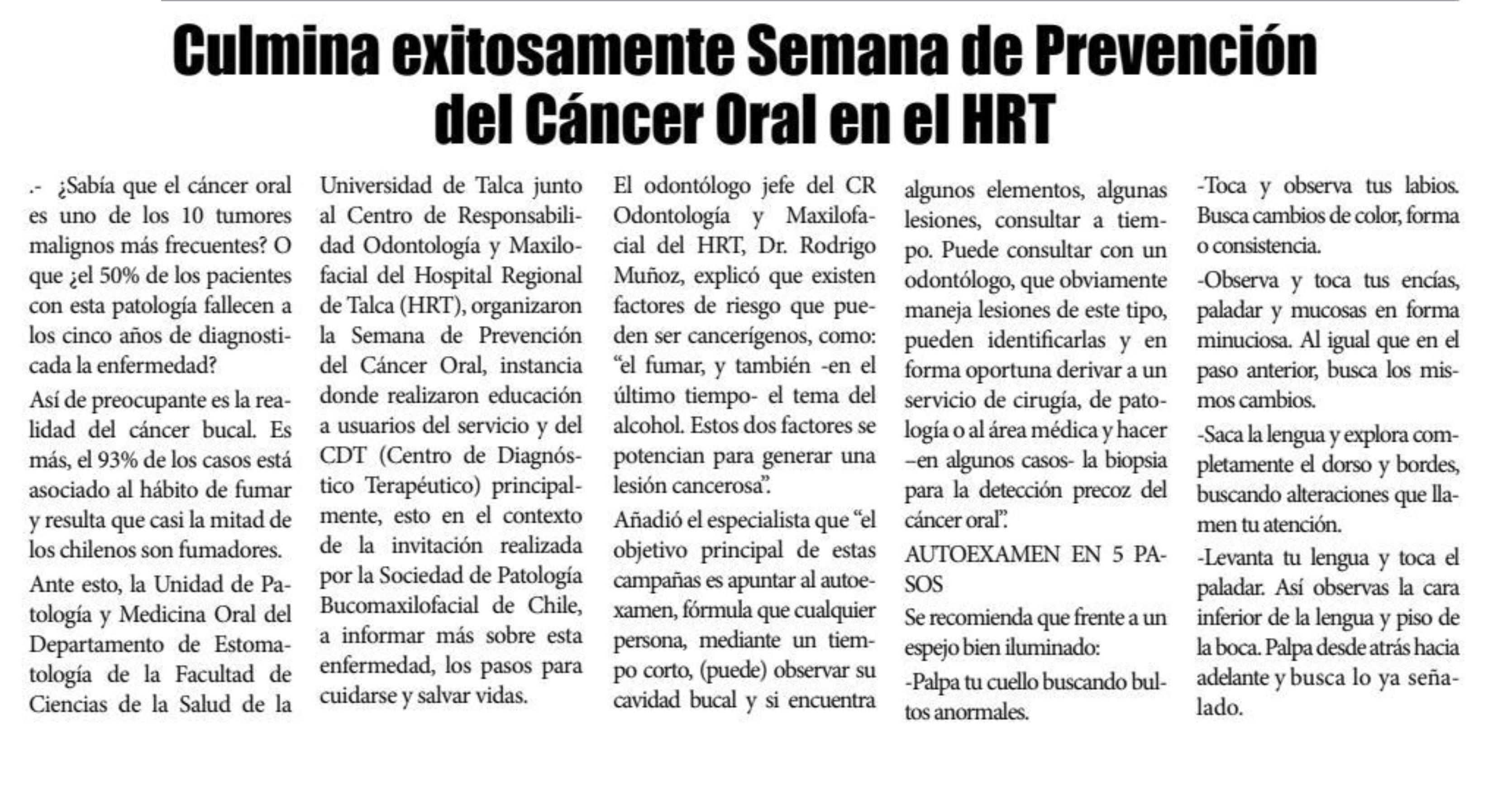 Culmina exitosamente Semana de Prevención del Cáncer Oral en el HRT. Se menciona a UTalca.