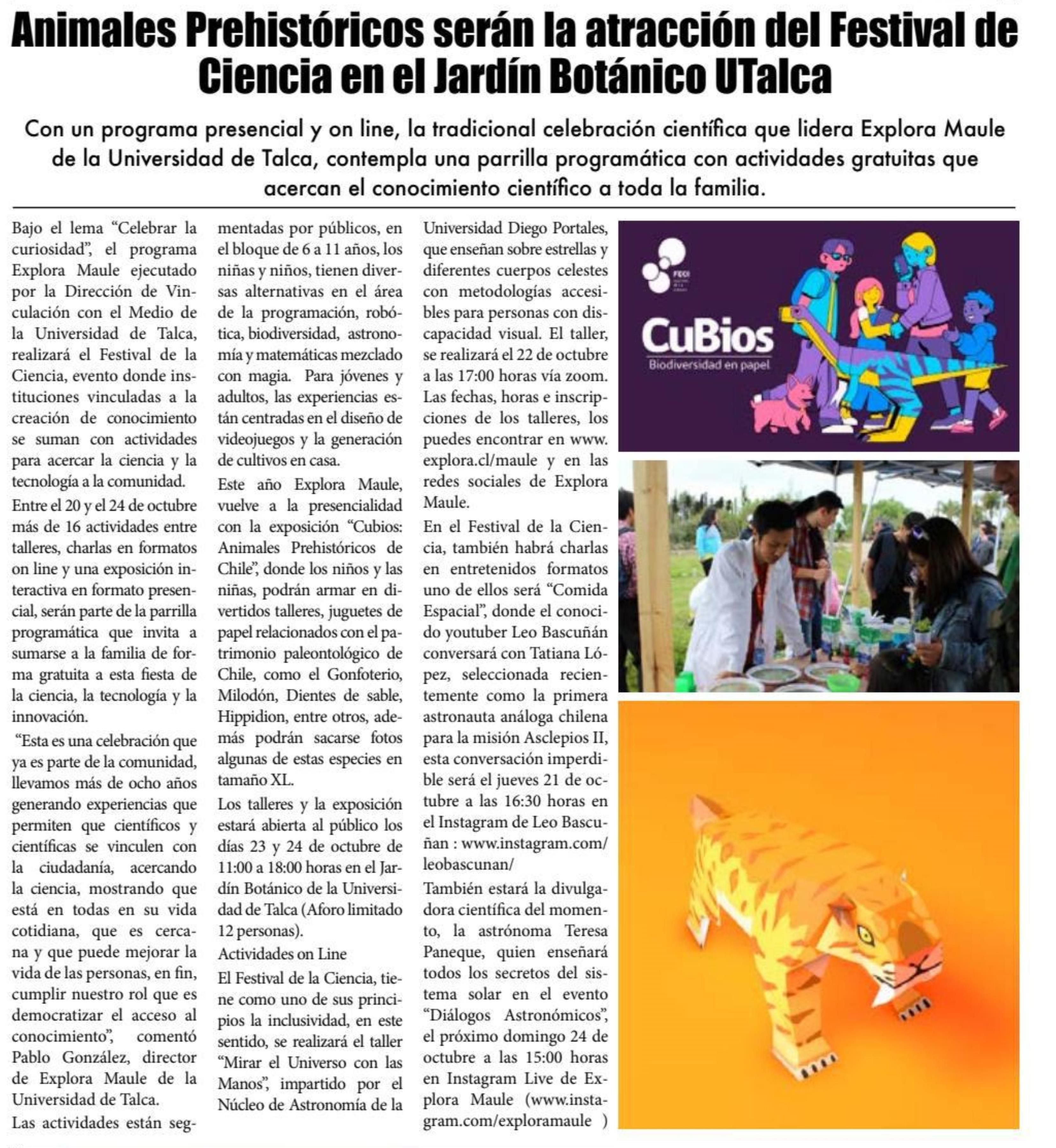 Animales Prehistóricos serán la atracción del Festival de Ciencia en el Jardín Botánico UTalca.