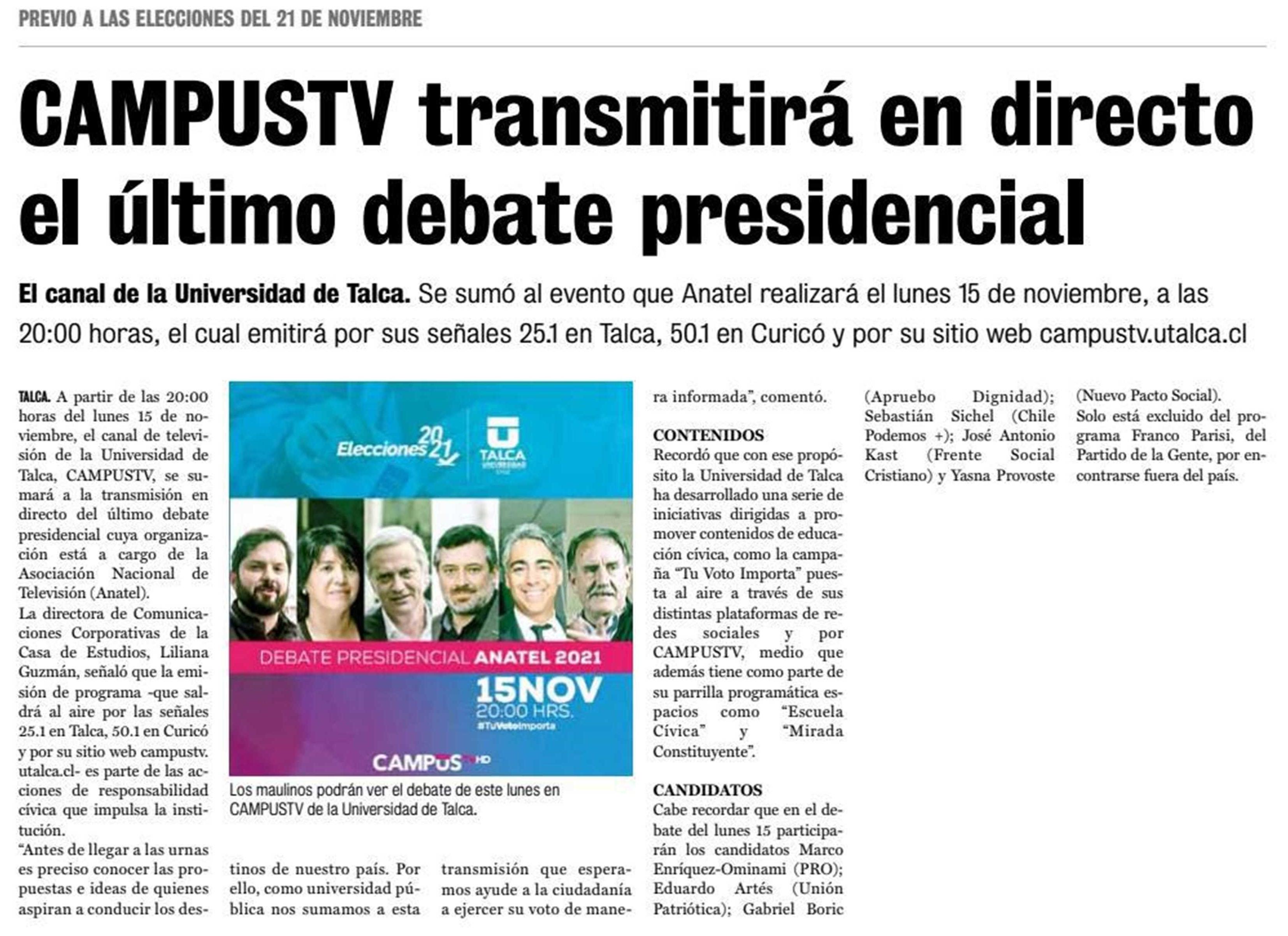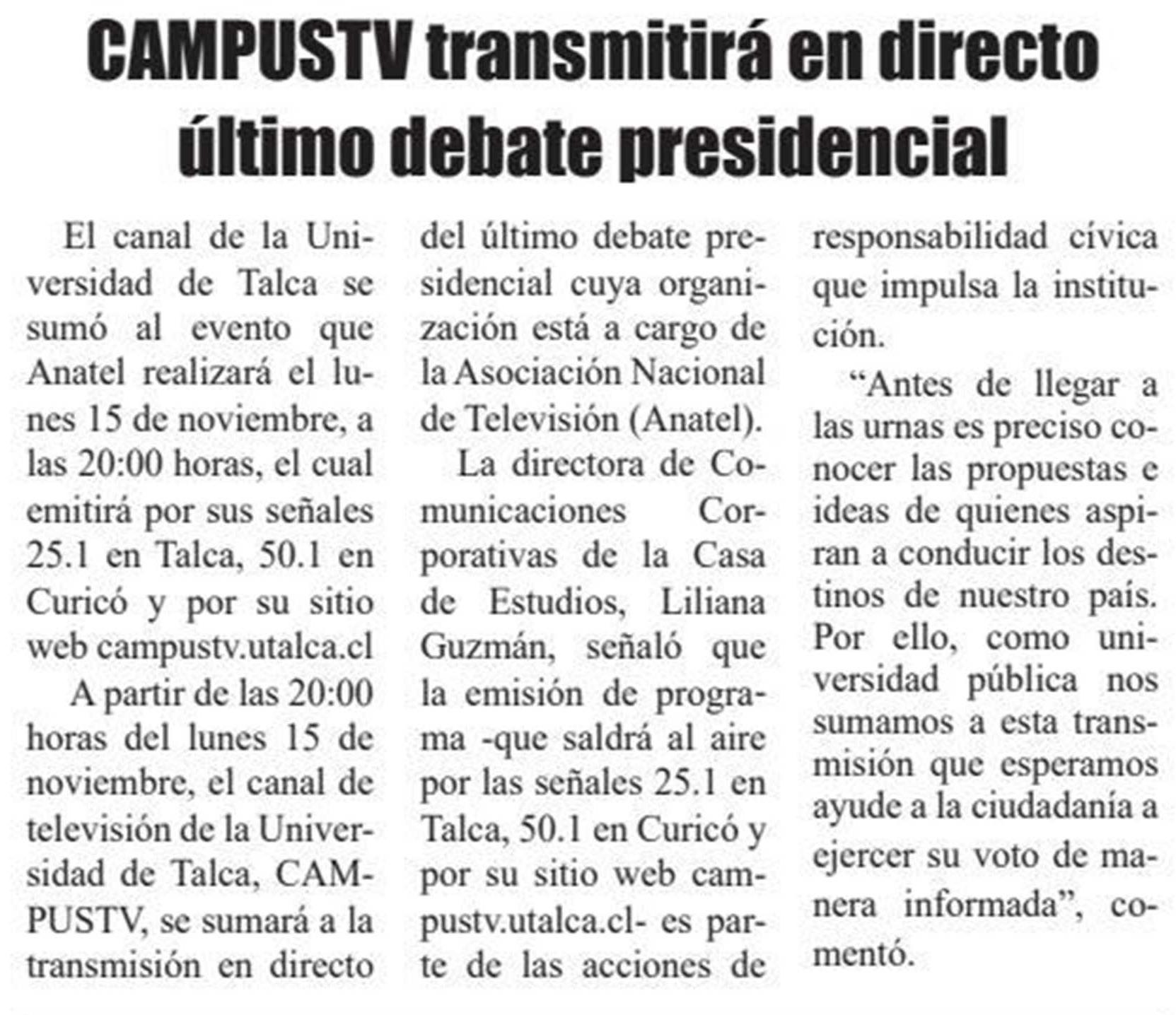 CAMPUSTV transmitirá en directo último debate presidencial.