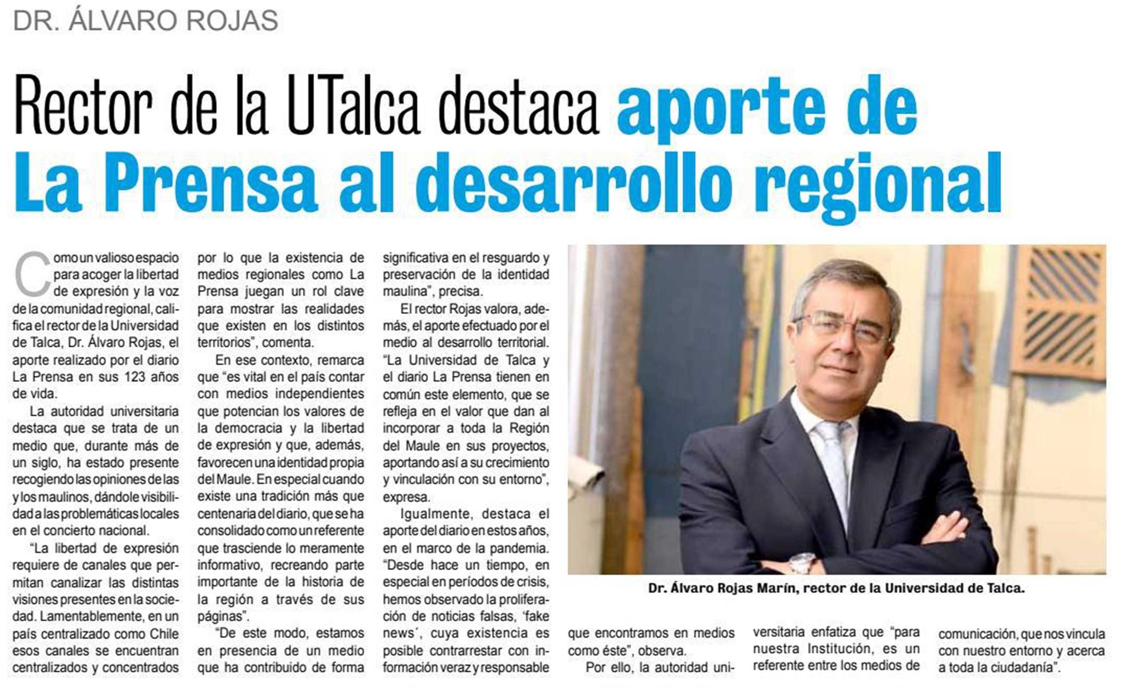 Rector de la UTalca destaca aporte de La Prensa al desarrollo regional.