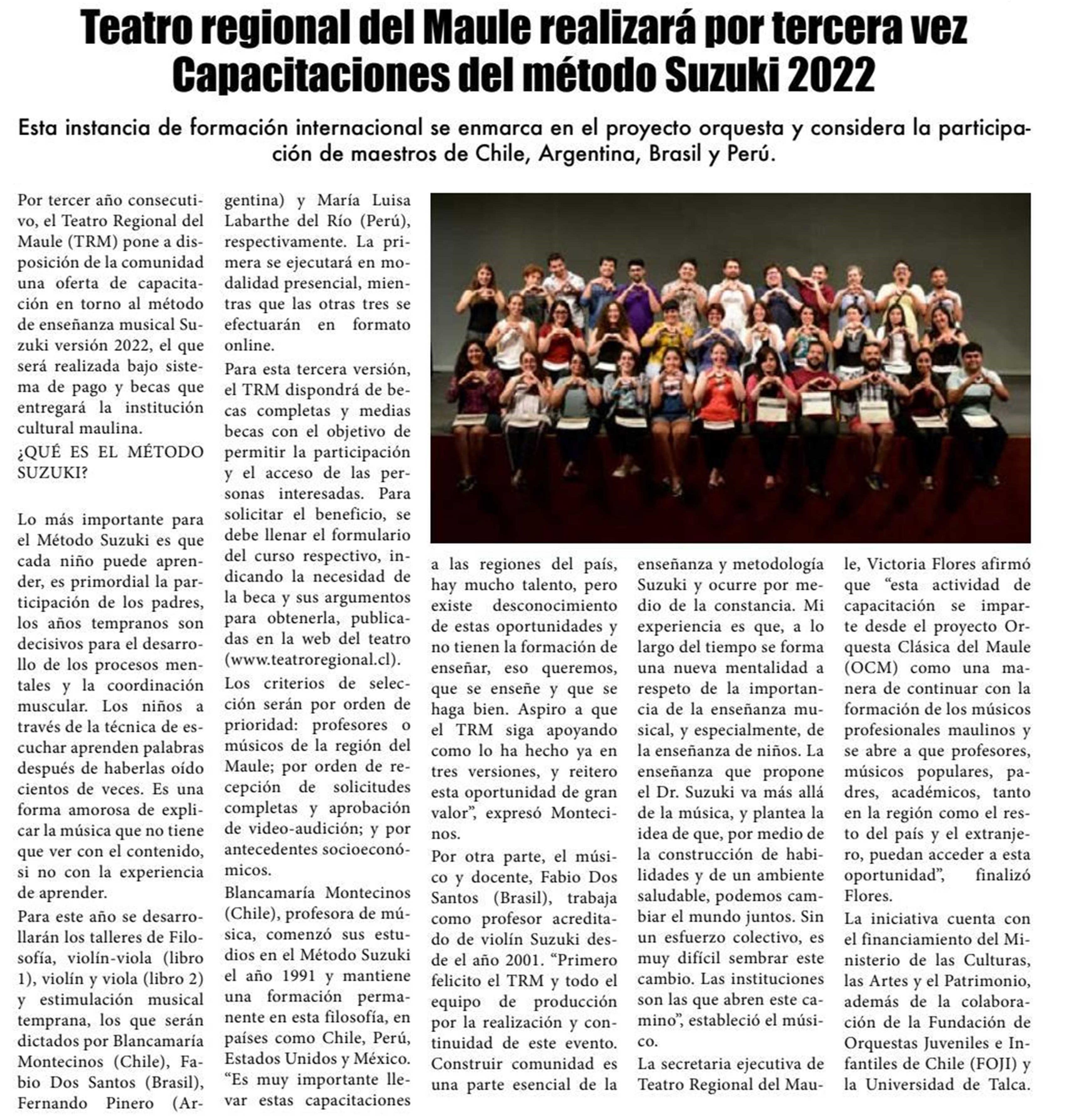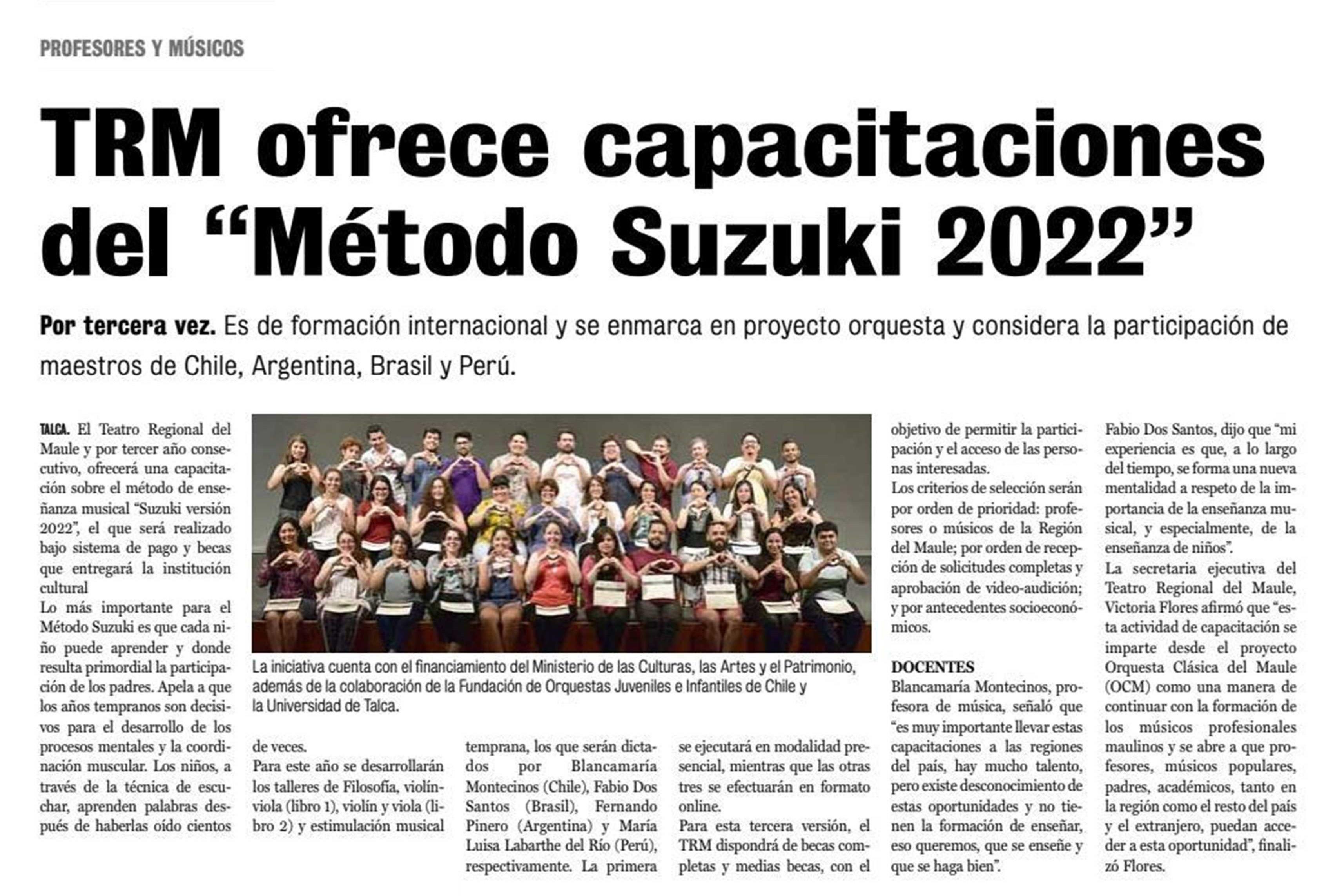 TRM ofrece capacitaciones del “Método Suzuki 2022”. Se menciona a la UTalca.
