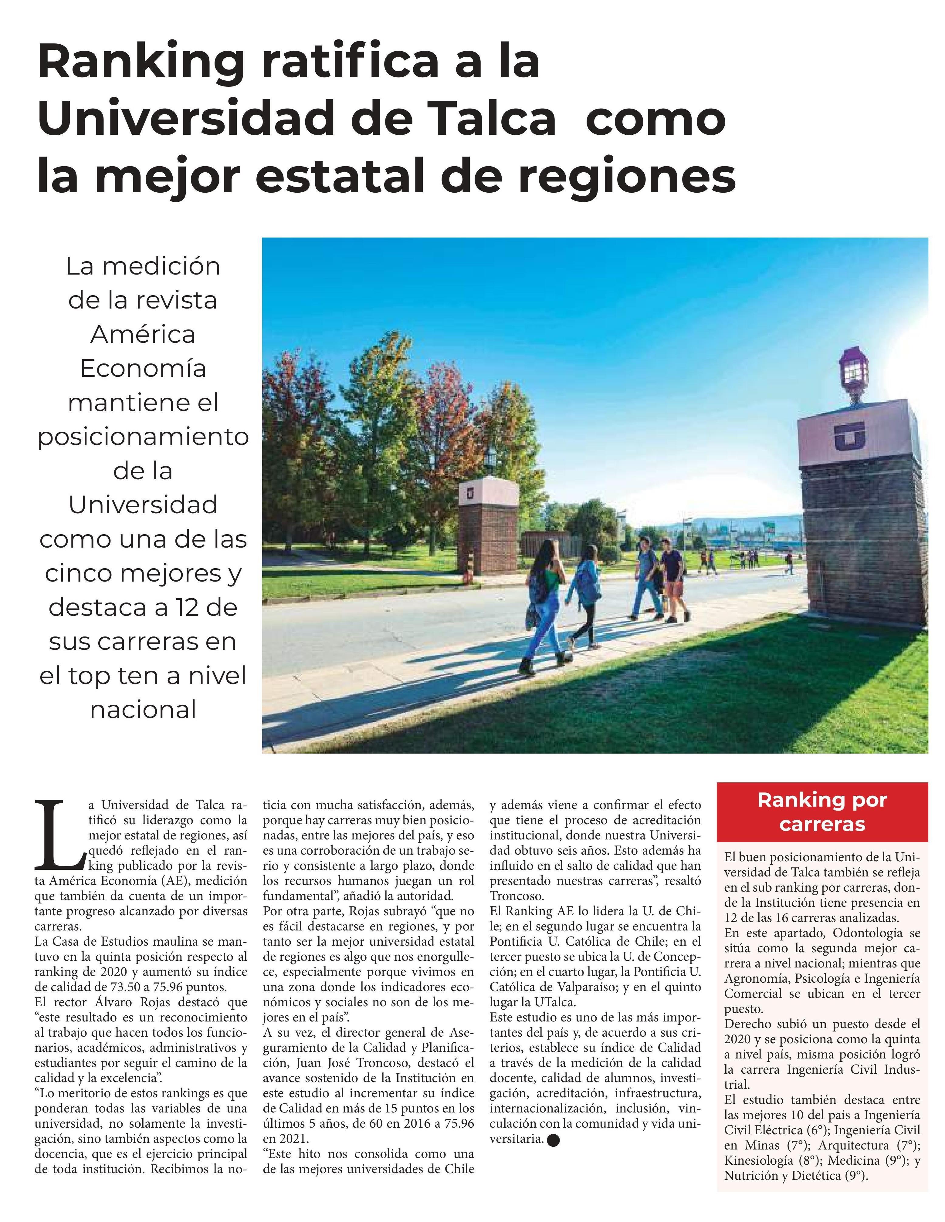 Ranking ratifica a la Universidad de Talca como la mejor estatal de regiones.