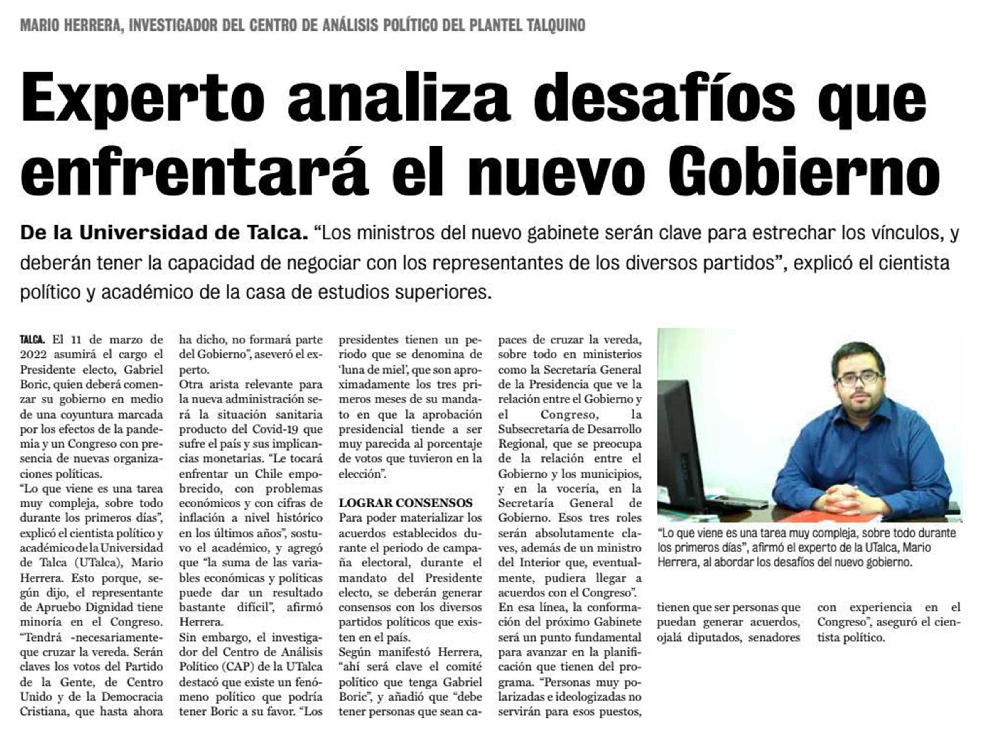 Entrevista a Fabián Soto, académico del Centro de Análisis Político (CAP) de la UTalca.