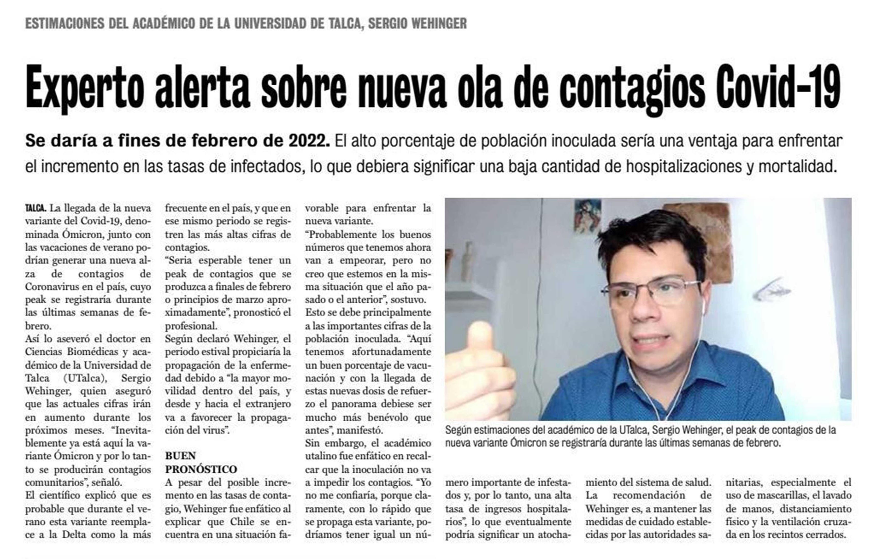 Experto predice nueva ola de contagios Covid-19 para fines de febrero.
