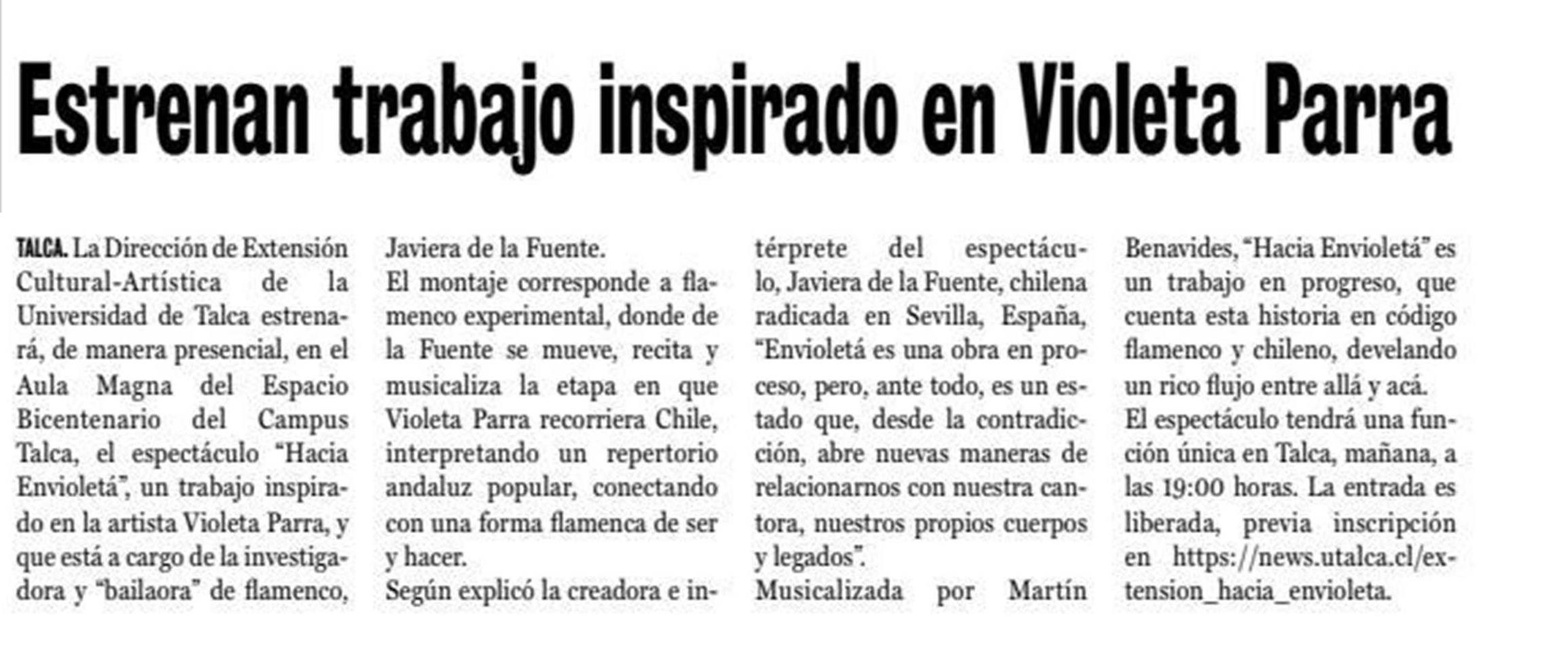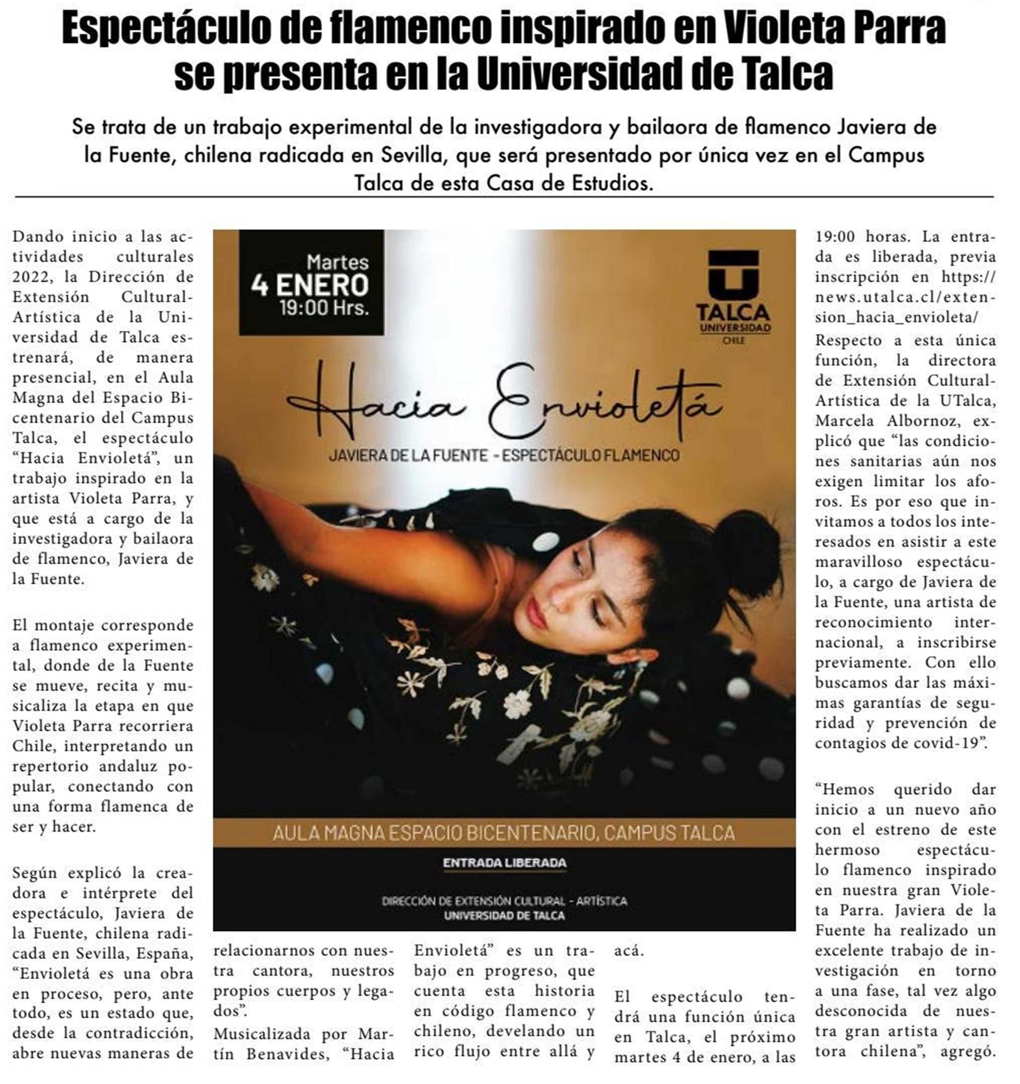 Espectáculo de flamenco inspirado en Violeta Parra se presenta en la Universidad de Talca.