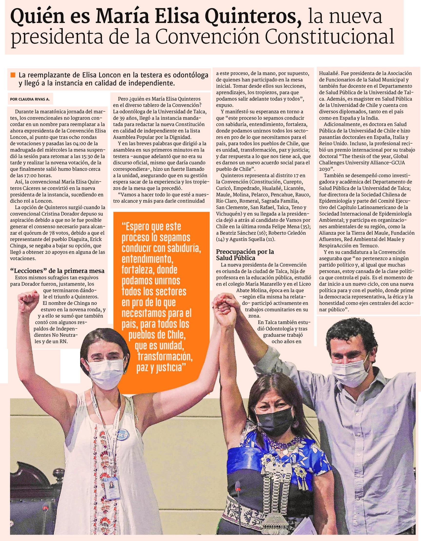 Convención Constitucional y elección nueva presidenta: Reseña biográfica de María Elisa Quinteros.