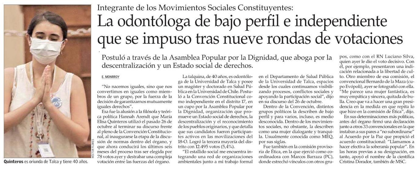 María Elisa Quinteros (IND): la odontóloga de Talca que llega a la cabeza de la Convención.
