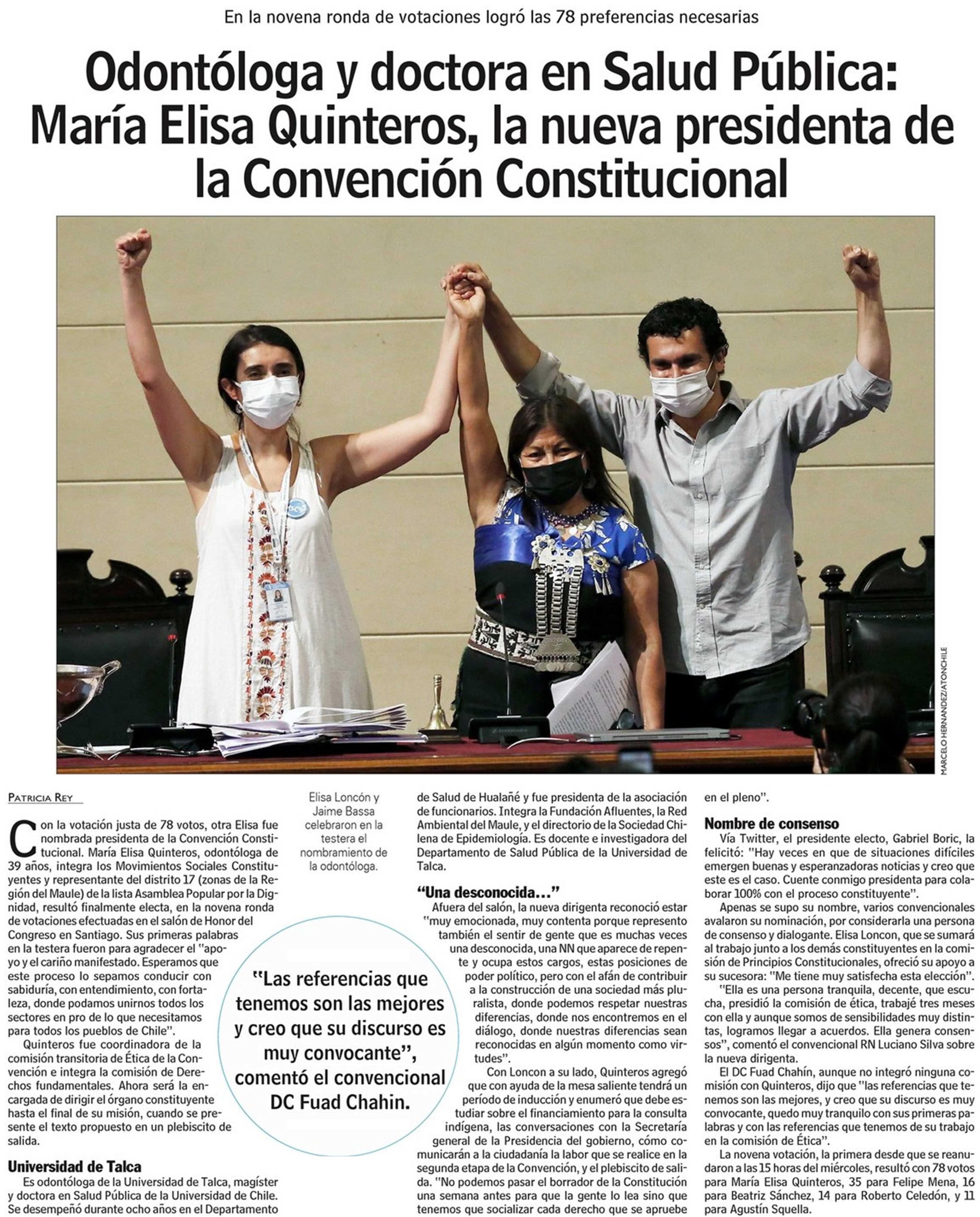Tras nueve votaciones: talquina es la nueva presidenta de la Convención Constitucional.