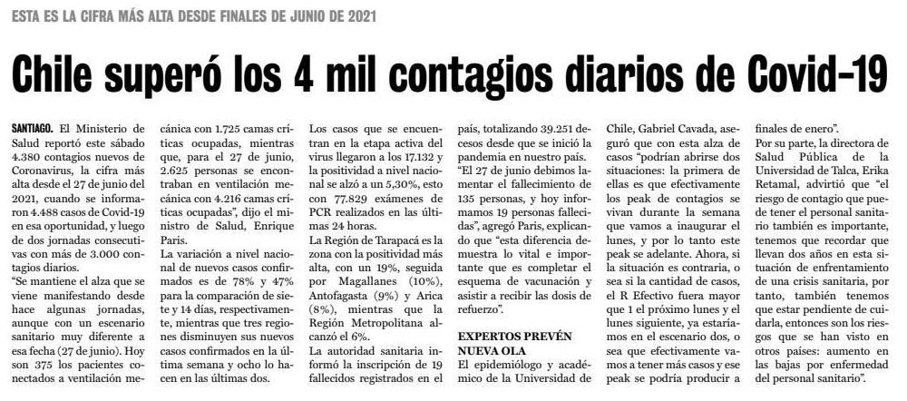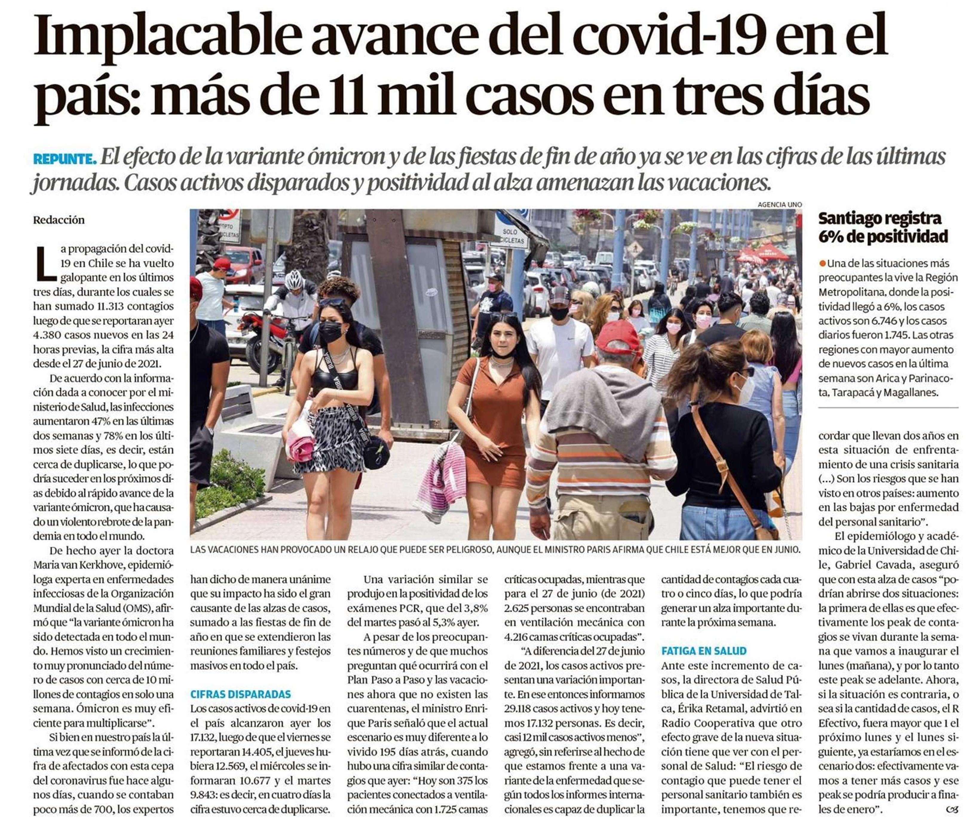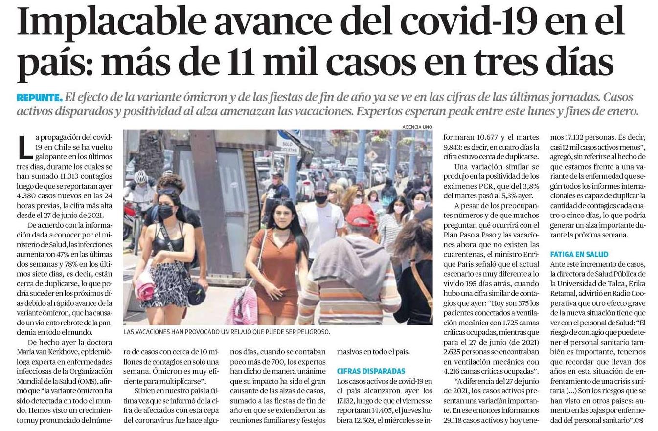 Implacable avance del Covid-19 en el país: más de 11 mil casos en tres días. Se refiere Erika Retamal, directora del Departamento de Salud Pública de la UTalca.