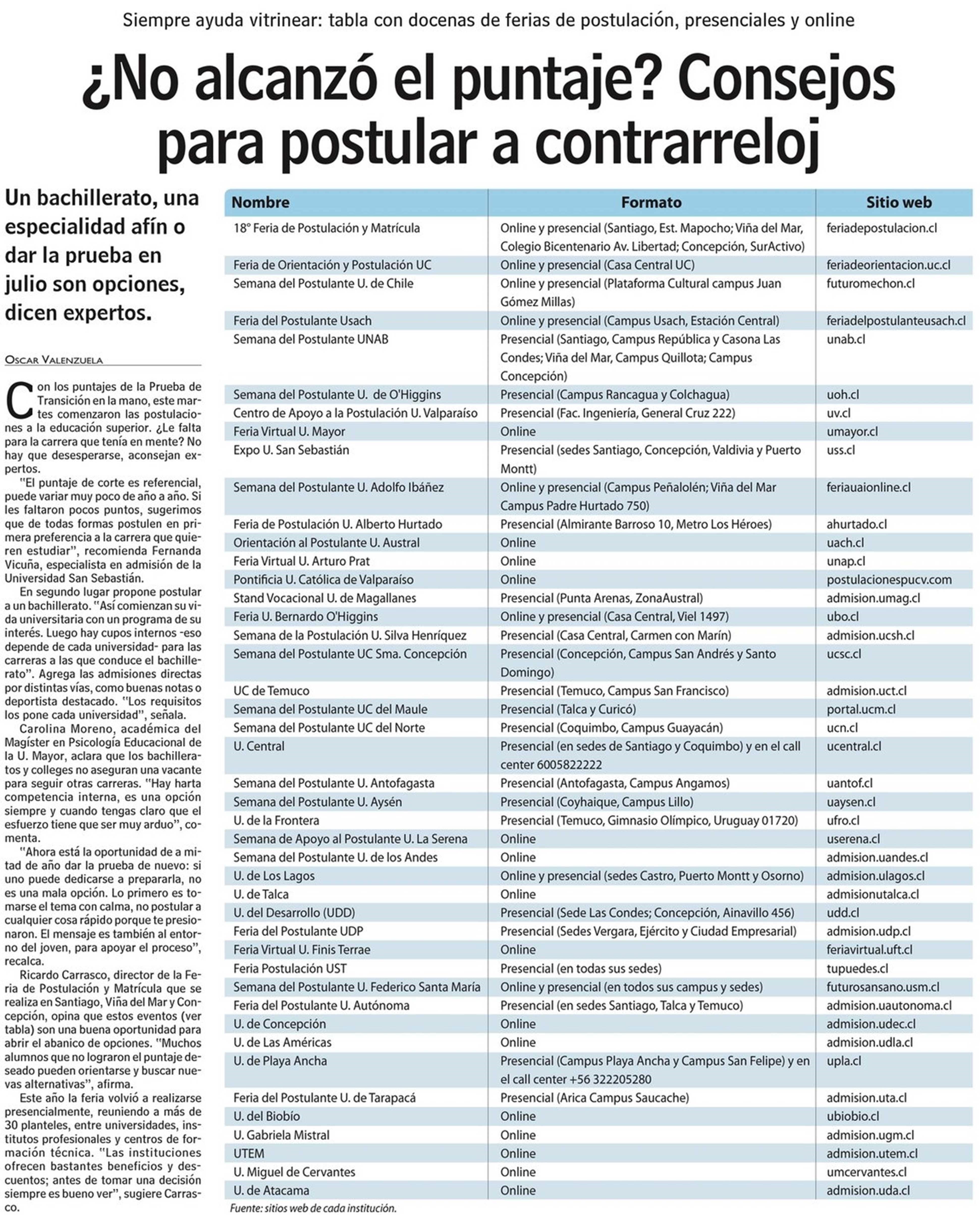 ¿No alcanzó el puntaje? Consejos para postular a contrarreloj. Se menciona a la UTalca.