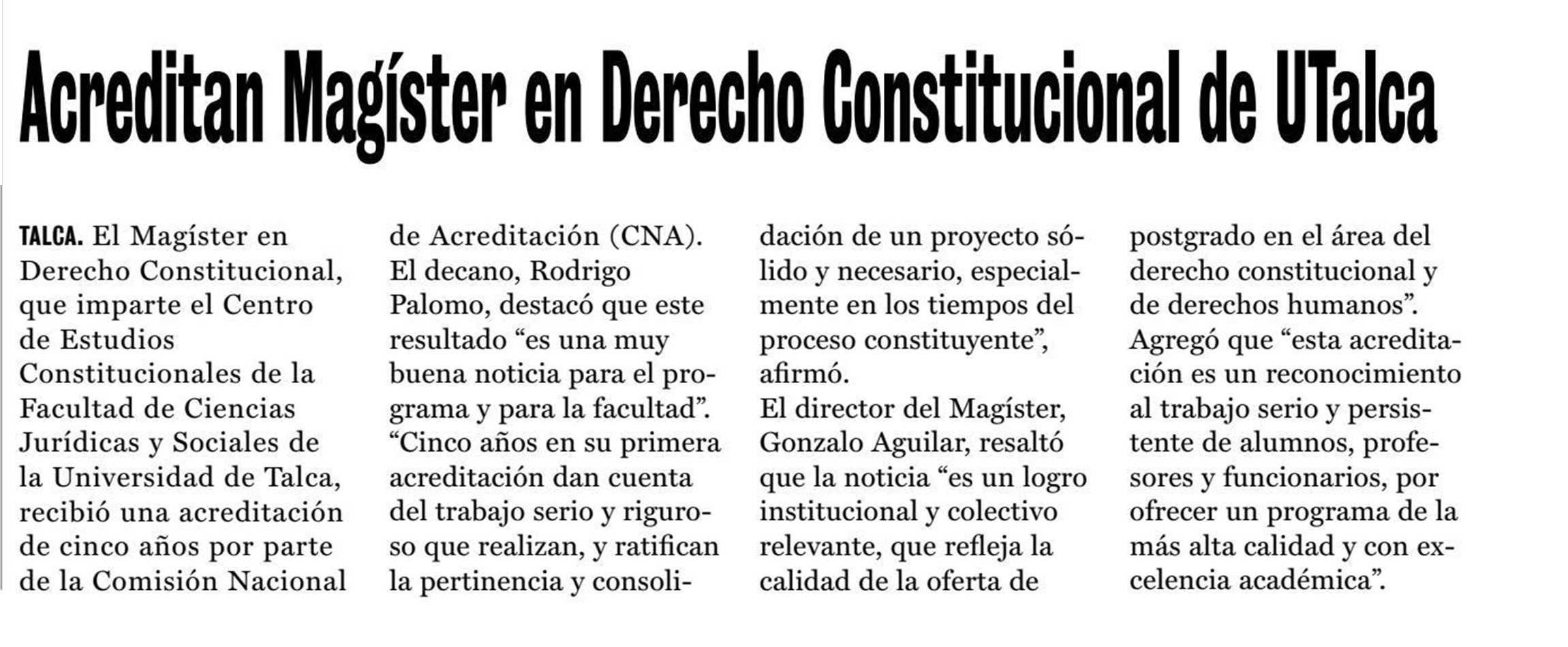 Acreditan Magíster en Derecho Constitucional de UTalca.