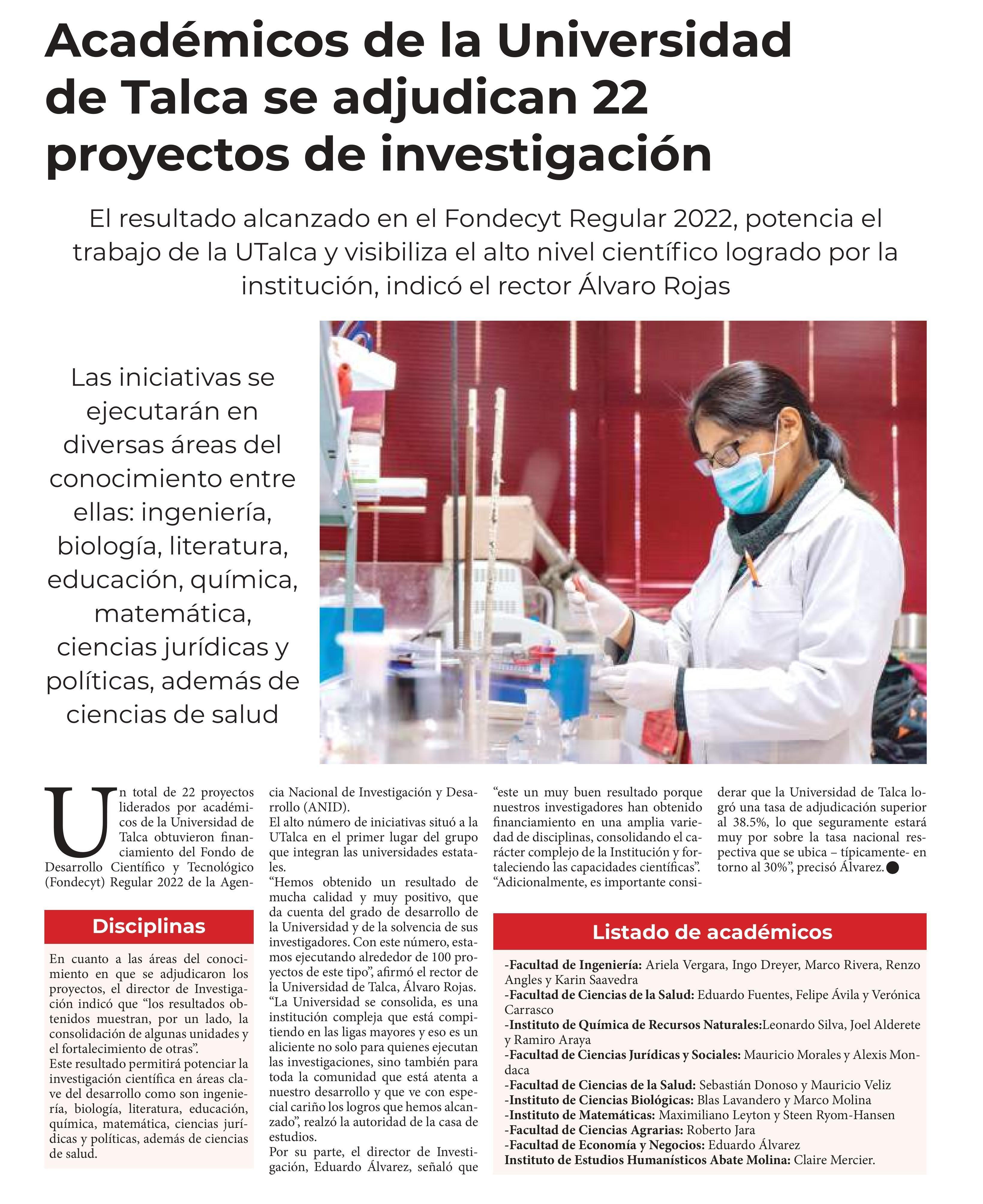 Académicos de la Universidad de Talca se adjudican 22 proyectos de investigación.