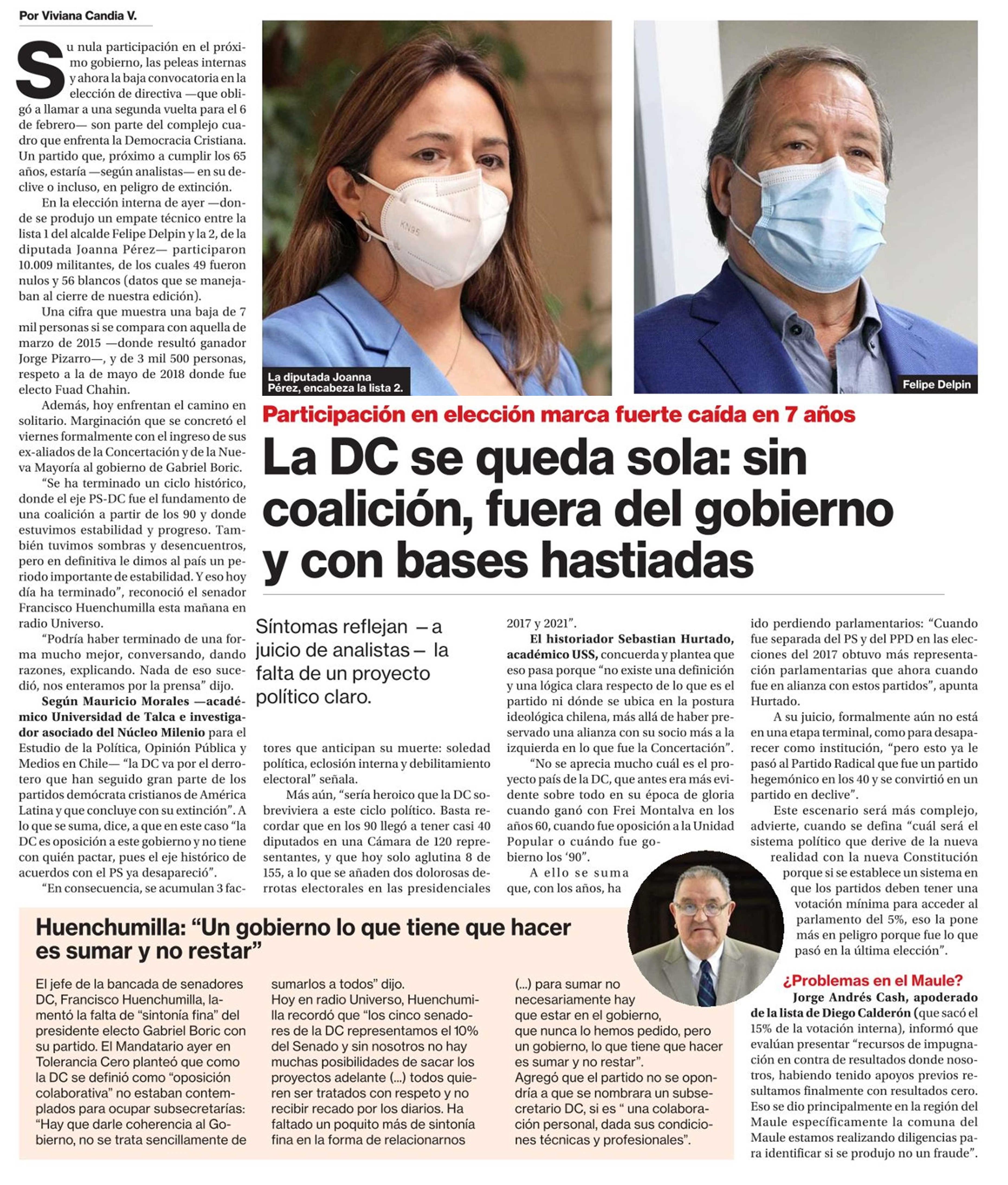 La DC se queda sola: sin coalición, fuera del gobierno y con bases hastiadas. Se refiere Mauricio Morales, director del Centro de Análisis Político de la UTalca.