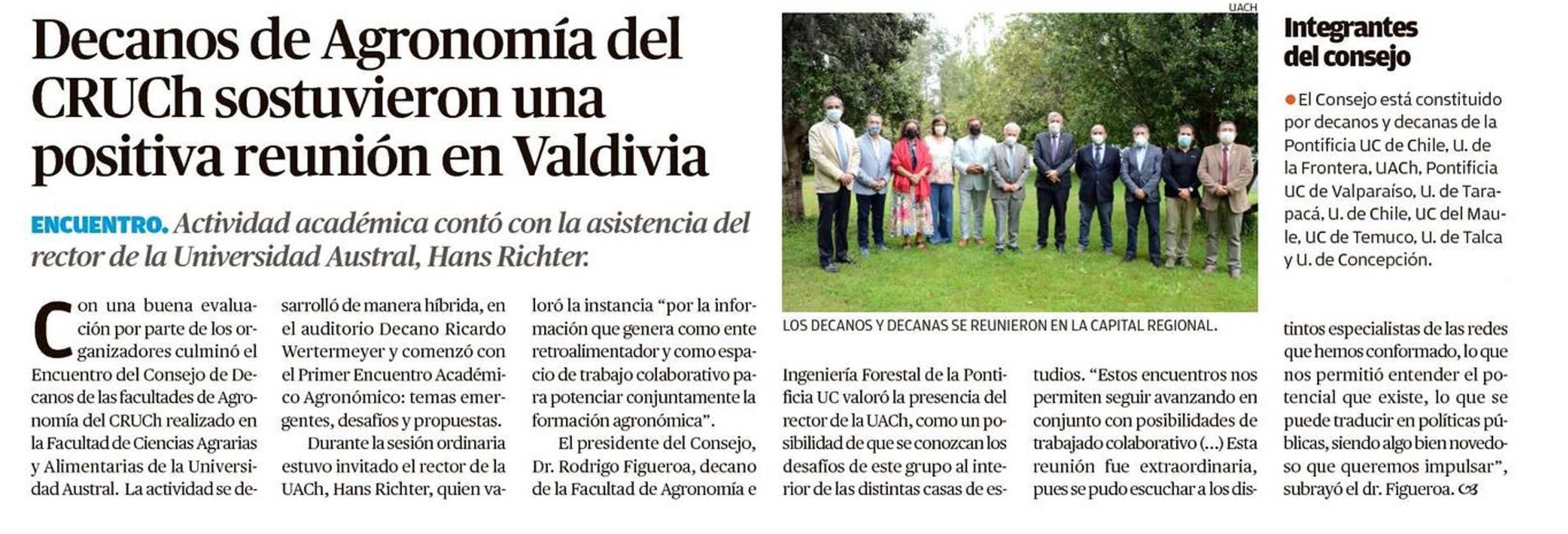 Decanos de Agronomía del CRUCH sostuvieron una positiva reunión en Valdivia. Se menciona a la Universidad de Talca.