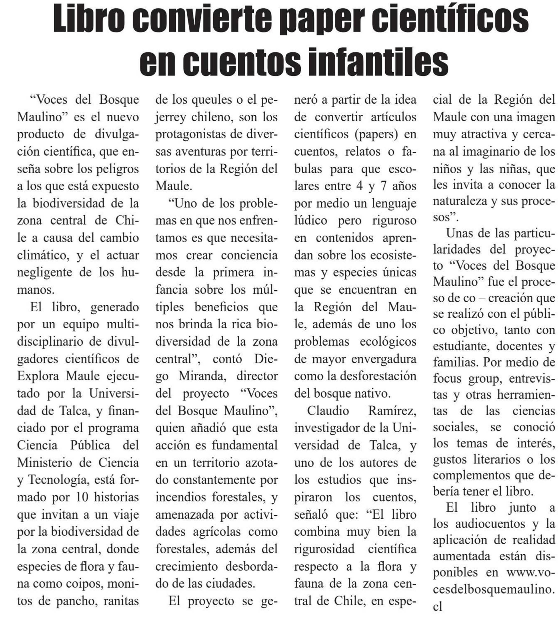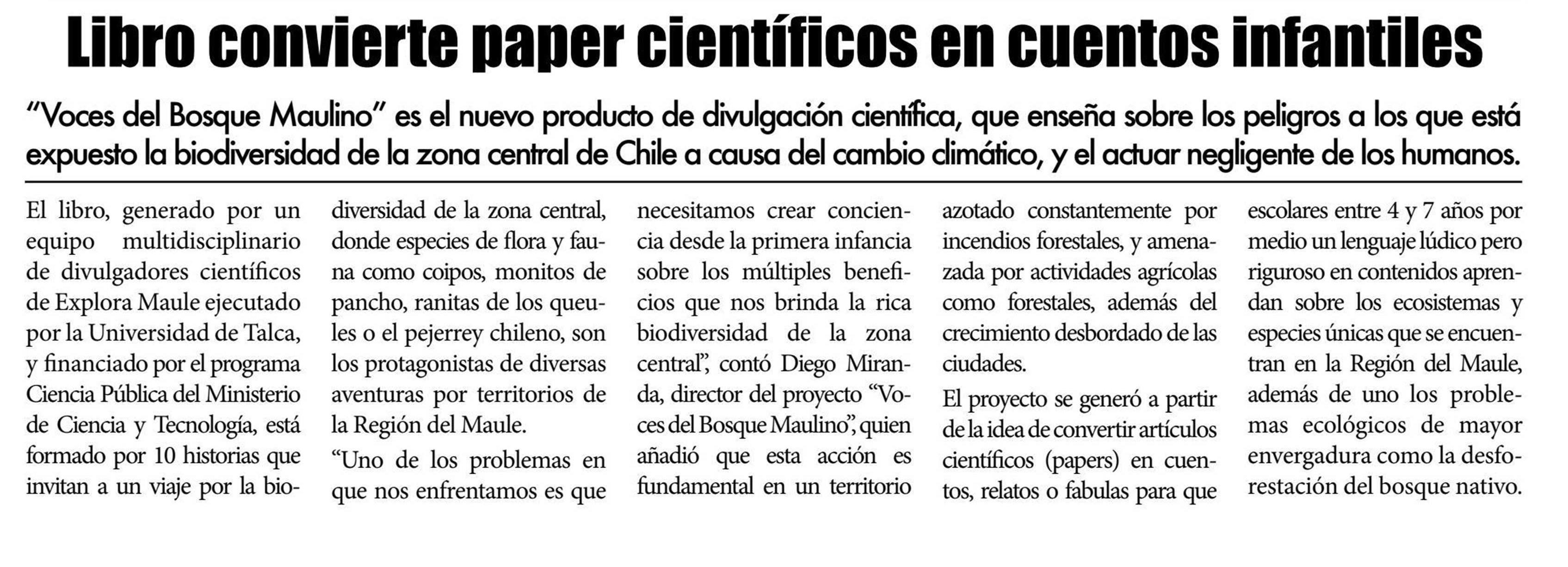 Libro convierte paper científicos en cuentos infantiles. Se menciona a la UTalca.