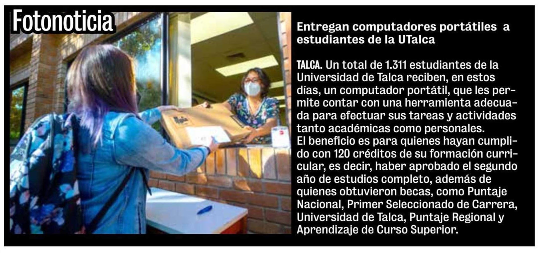 Entregan computadores portátiles a estudiantes de la UTalca.