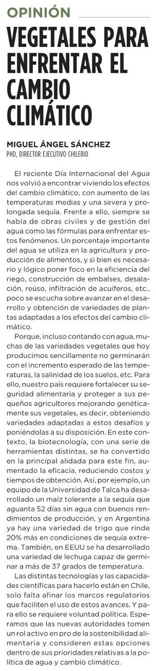 Vegetales para enfrentar el cambio climático. Se menciona a la UTalca.